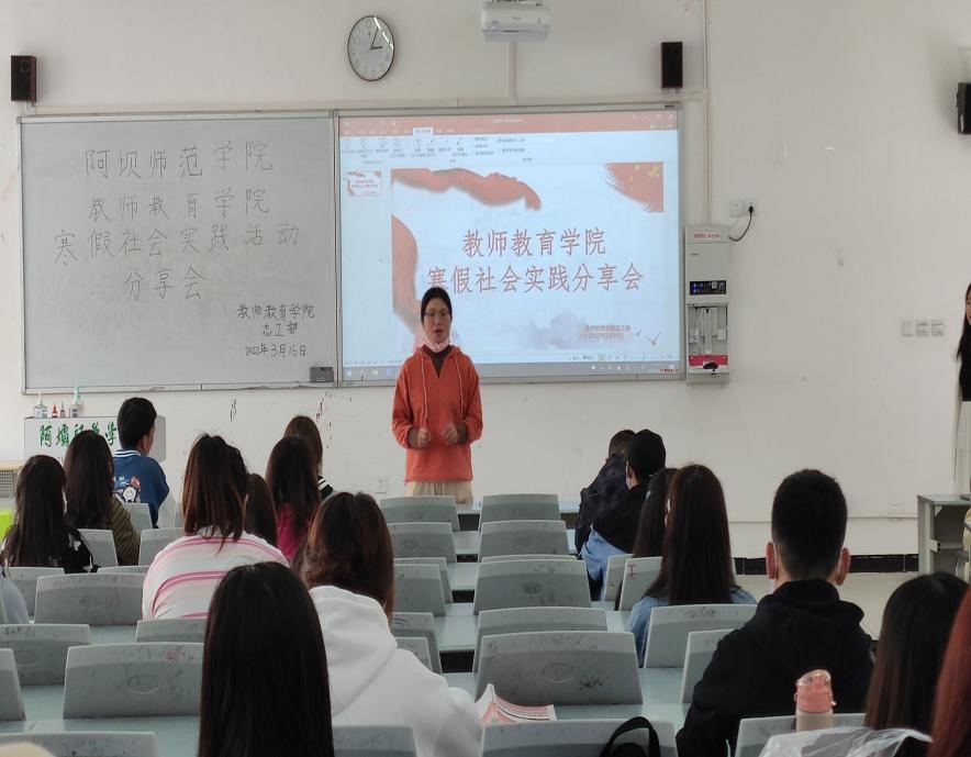 【教院讯】为深入学习贯彻习近平新时代中国特色社会主义思想和党的十九届六中全会精神,迎接党的二十大和庆祝建团100周年,引领广大青年学生在党的号召下,在社会实践中受教育、长才干、作贡献,我院同学利用寒假积极参与形式多样、内容丰富的社会实践活动。3月16日15:00 我院志工部在树人楼C202教室举行寒假社会实践经验分享会。本次会议由志工部张月迪同学主持,党总支副书记范燕华莅临现场指导。