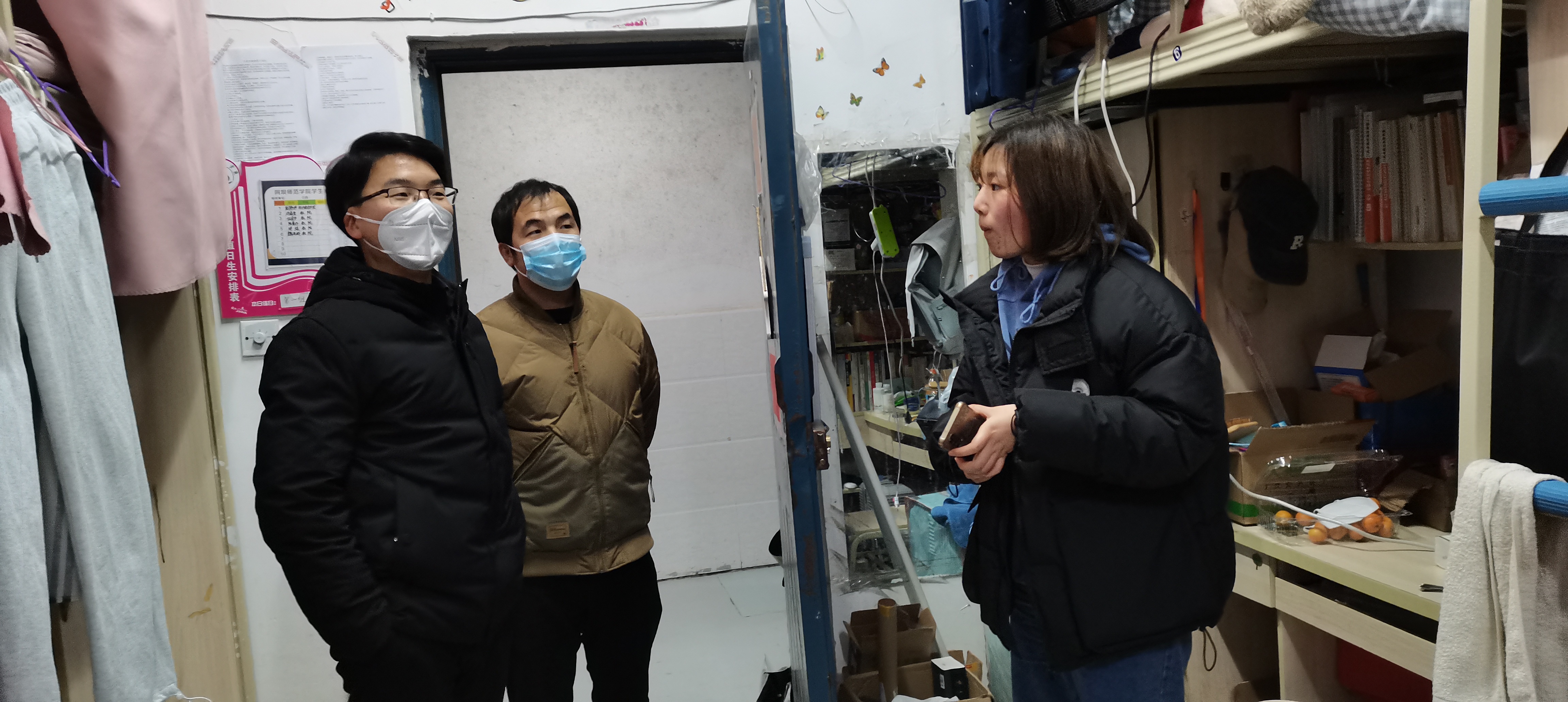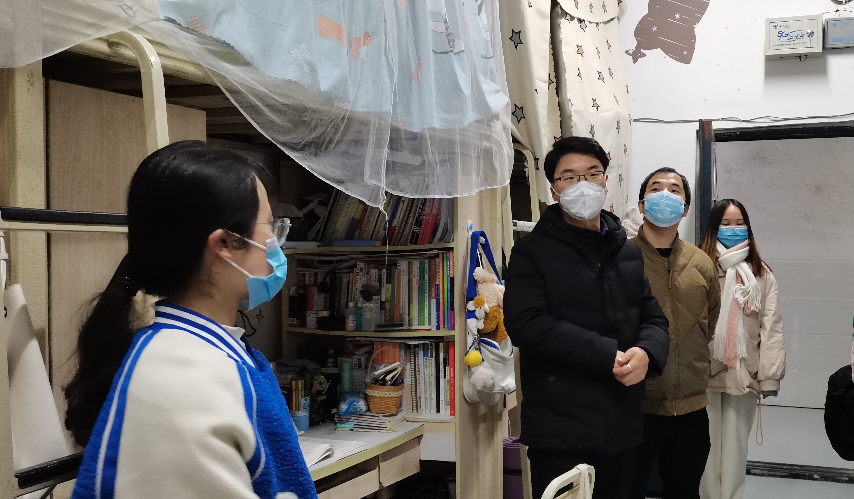 【教院讯】为更好落实寒假疫情防控工作,关心关爱留校学生,进一步做好留校学生的心理健康和服务保障工作,1月3日20:00,时值新春佳节即将到来之际,教师教育学院开展寒假留校学生慰问活动。王亚老师、李明星老师、顾鹏老师、华尔么老师等一同参加慰问活动,为同学们带来学院的新春问候。
