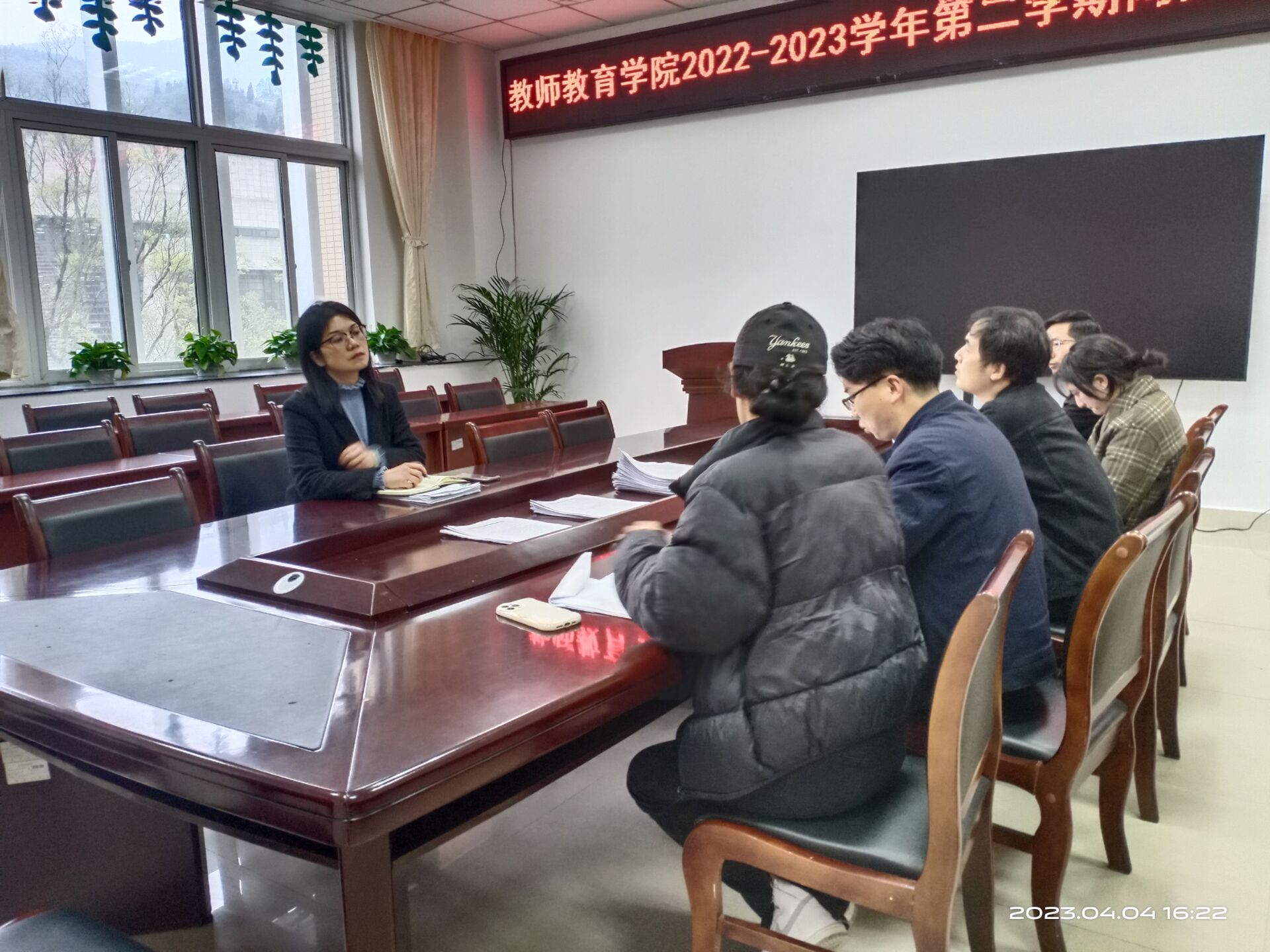 【教院讯】根据学院团委文件要求,结合教师教育学院团委、班级团支部工作开展实际情况,2023年4月4日16点 教师教育学院于B305会议室召开2022-2023学年第二学期“两红两优”评定会,学院党委副书记范燕华、学工办副主任兼团委书记王亚、挂职团委副书记王灏、学生支部书记顾鹏、华尔么老师、斯郎央章老师参会。会议由范书记主持。
