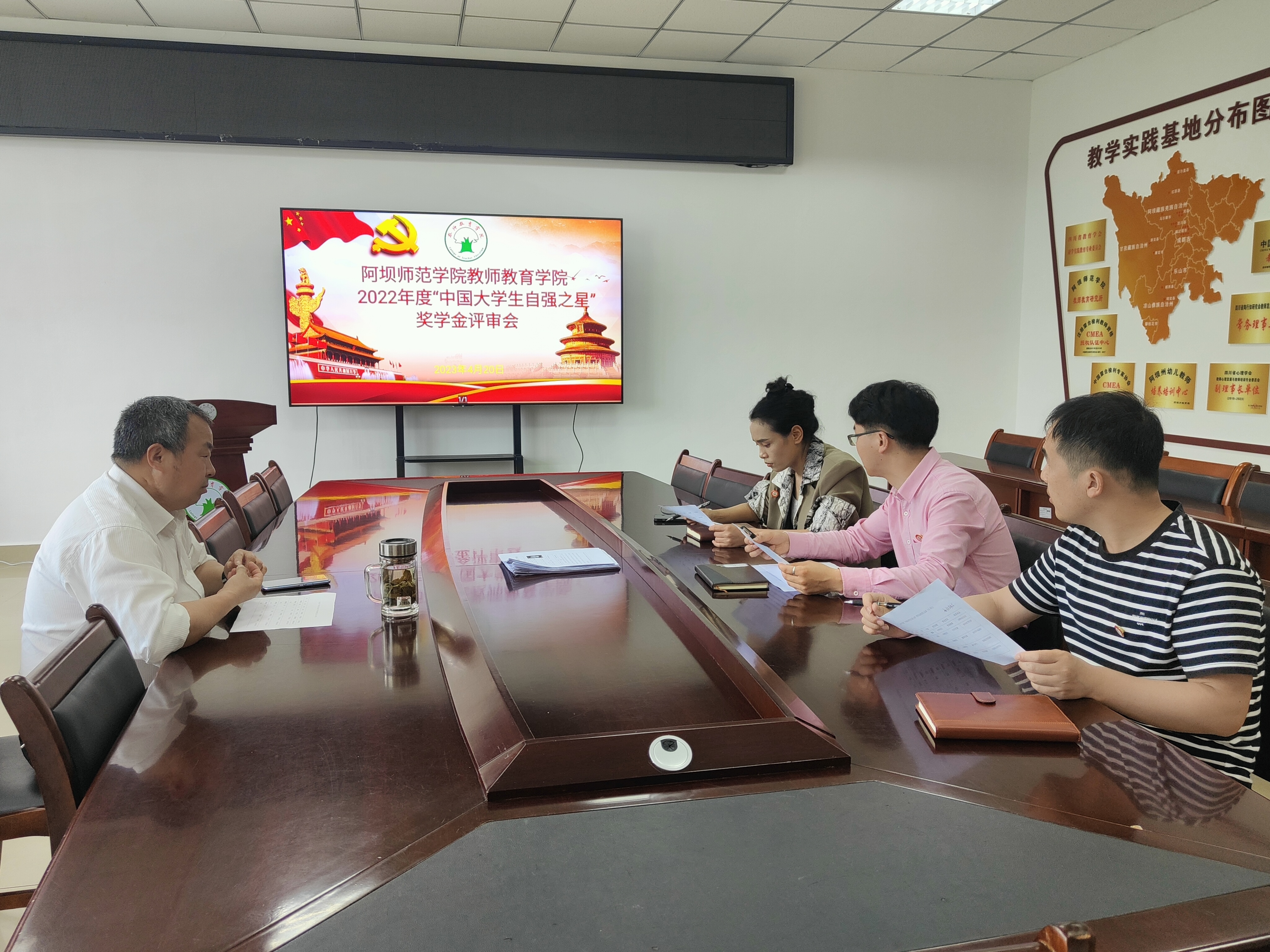 【教院讯】为深入贯彻落实习近平总书记关于青年工作的重要思想,围绕学习宣传贯彻党的二十大精神,在广大青年群体中厚植爱党、爱国、爱社会主义的情感,引导广大青年立志做有理想、敢担当、能吃苦、肯奋斗的新时代好青年,根据《团中央、全国学联2022年度“中国大学生自强之星”奖学金项目说明书》要求和团省委、校团委相关文件精神,教师教育学院于2023年4月20日15点 在B305会议室召开2022年度“中国大学生自强之星”奖学金候选人评定会。学院党委书记邓志光,学工办副主任、团委书记王亚,学生党支部书记顾鹏,辅导员斯郎央章老师参会。会议由王亚老师主持。