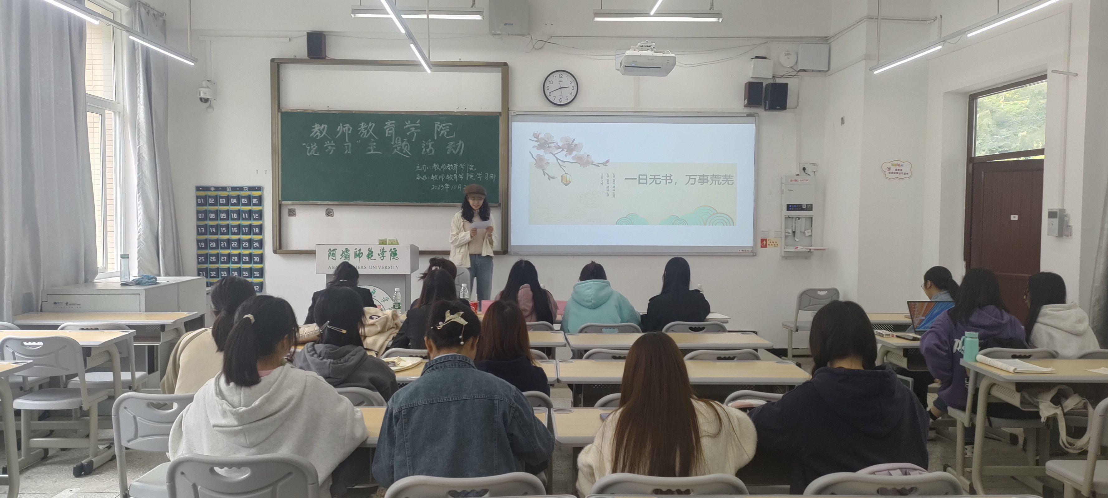 【教院讯】为促进同学们相互交流学习经验,增强我院学子的自我表达和语言逻辑能力,营造人人“说学习”“爱学习”的良好氛围。我院于2023年10月20日在树人楼D201开展了学生“说学习”比赛。此次比赛活动由我院学习部拟推干事陈玥主持,由学习部部长蒋悦、主席团刘雯、主席团登真启真、主席团毛梦芹、主席团团委副书记何静担任评委,13名参赛选手参加比赛。