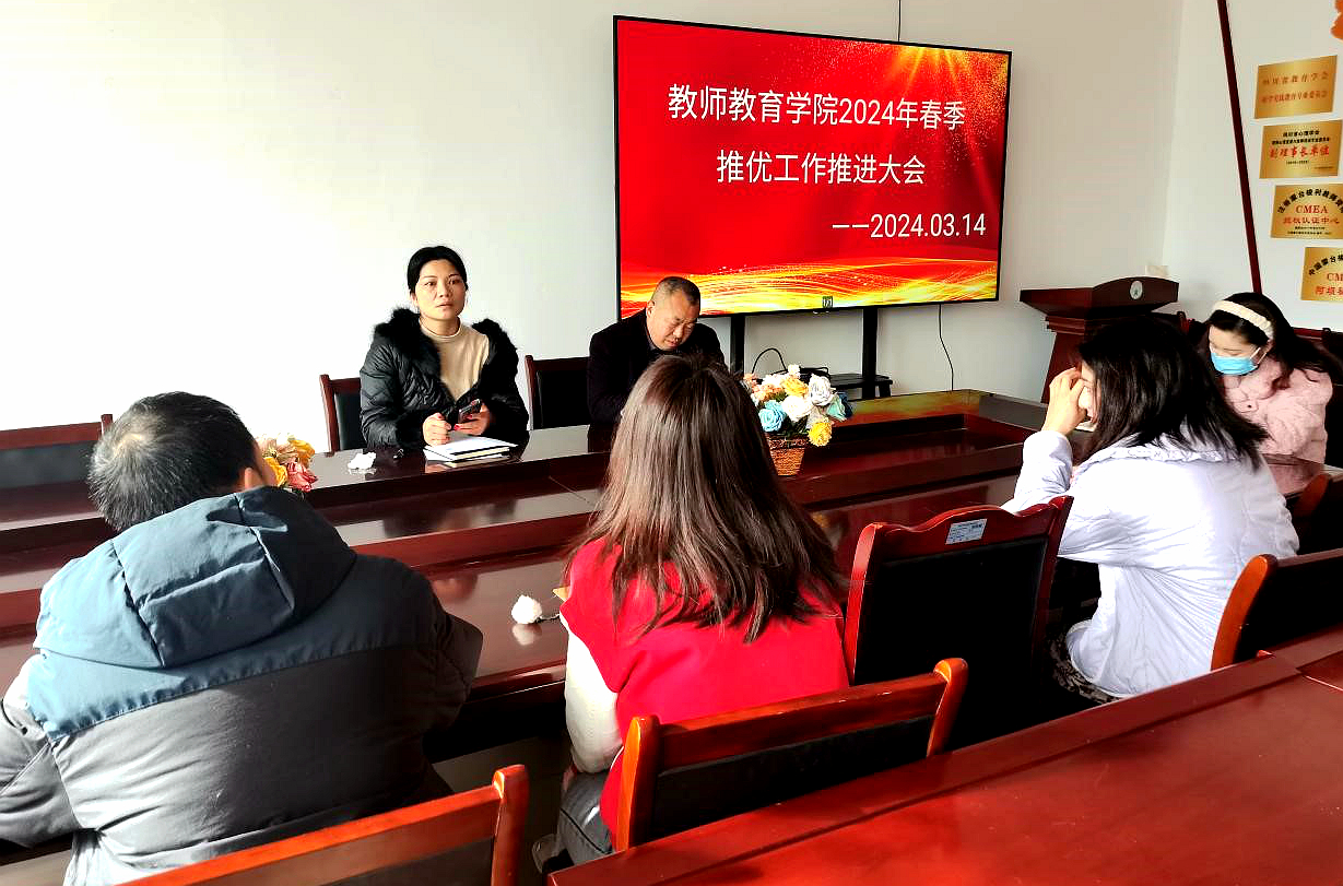 【教院讯】为保持和增强共青团的政治性、先进性、群众性,进一步规范和加强共青团“推优”工作,有效提升青年党员质量,教师教育学院在党组织领导下开展我院“推优入党”工作推进会,会议由学院党委副书记范燕华主持。在党委领导下,院党委、团委根据《共青团阿坝师范学院委员会关于推优入党工作实施办法(试行)》等有关规定,结合我院学生实际情况,对推优名额、推优细则等方面进行了讨论。
