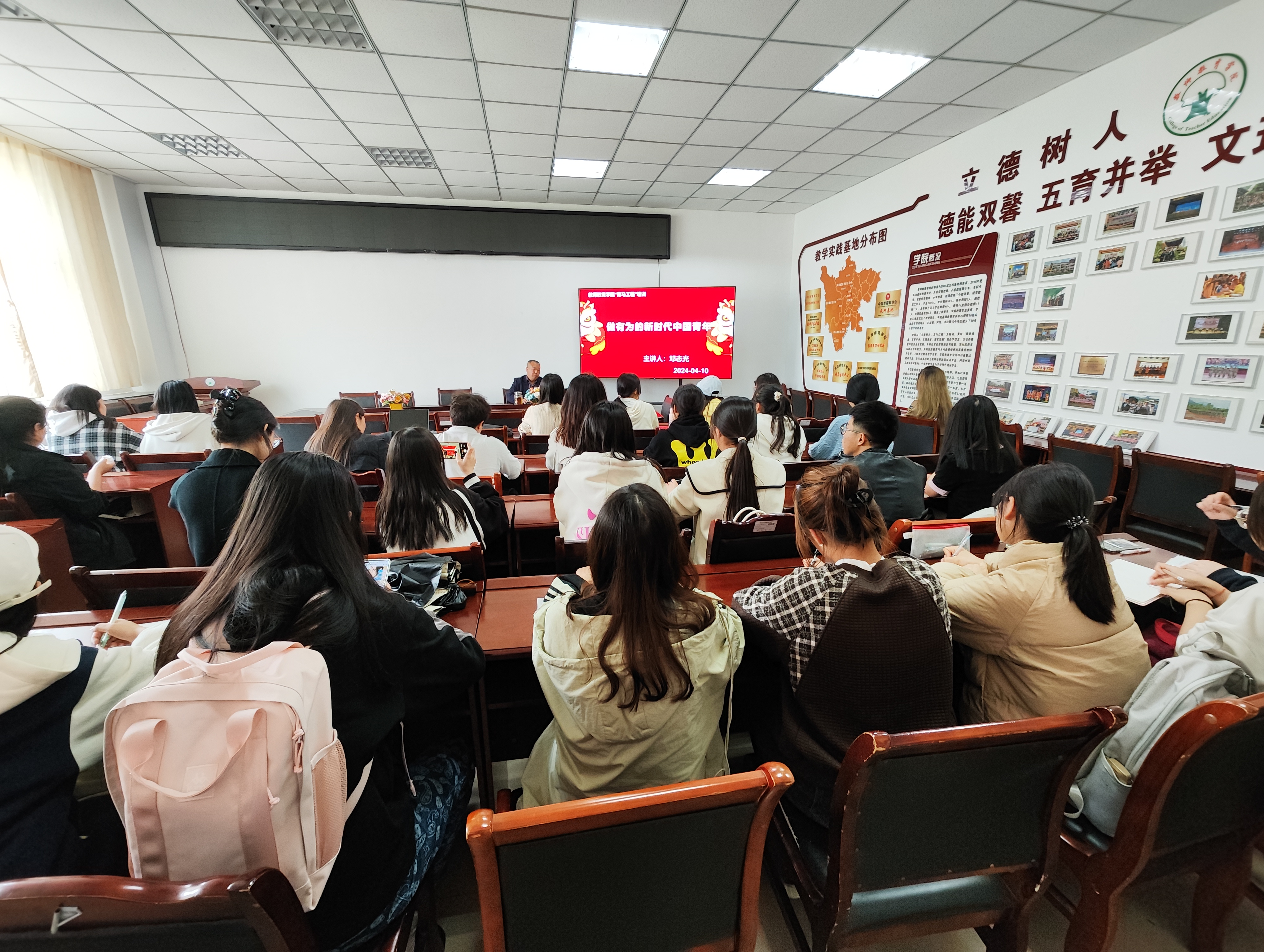 【教院讯】为深入学习贯彻党的二十大精神、四川省第十五次团代会精神,不断深化对习近平总书记关于青年工作重要思想的学思践悟。教师教育学院于2024年4月10日15:00在树人楼B305成功举办第四期“青马工程”第一讲,学院党委书记邓志光担任主讲,团委副书记徐雨薇老师主持。