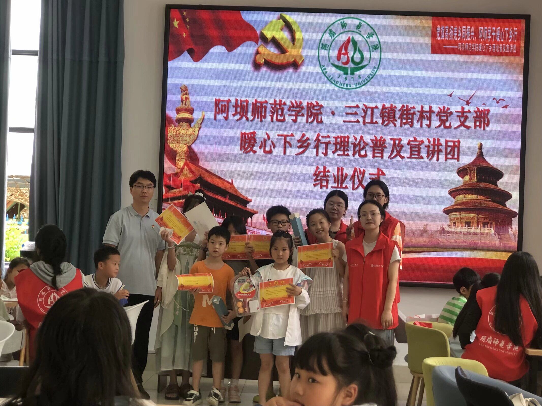 下午,举行了简短的结业仪式。结业仪式开始,全体人员肃立,奏唱国歌。接下来,街村党支部副书记刘琴、教师教育学院老师王亚分别讲话。之后,主持人宣布了本次社会实践活动的优秀学员名单,王老师向优秀学员颁发奖状和奖品。最后,全体参会领导、老师和同学们合影留念。
