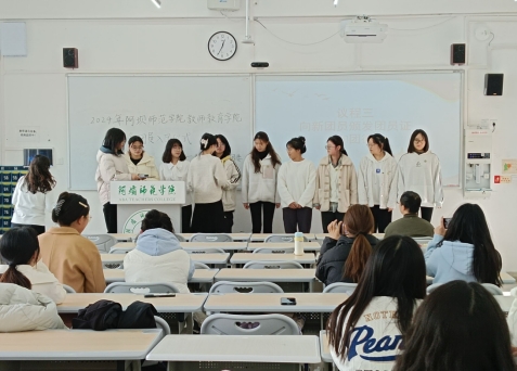 2024年11月13日,教师教育学院在庄严而隆重的气氛中迎来了一个特殊的时刻,八位青年学子满怀激情地加入了团组织,正式成为光荣的新团员。本次入团仪式不仅是对青年学子理想信念的一次深刻洗礼,也是对学院团学工作的一次有力推动。此次入团仪式党委副书记范燕华、团委书记顾鹏老师莅临现场。