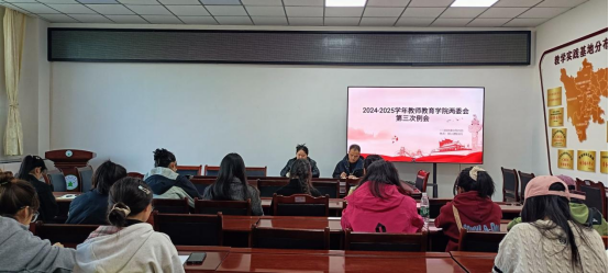 【教院讯】为确保各部门工作落实到位,更好地服务于学院的整体工作安排,2025年3月25日下午18:10,教师教育学院两委会第三次例会于树人楼B305成功举行,团委书记顾鹏、团委副书记黄敏以及各部门负责人和部分成员共同参与会议。