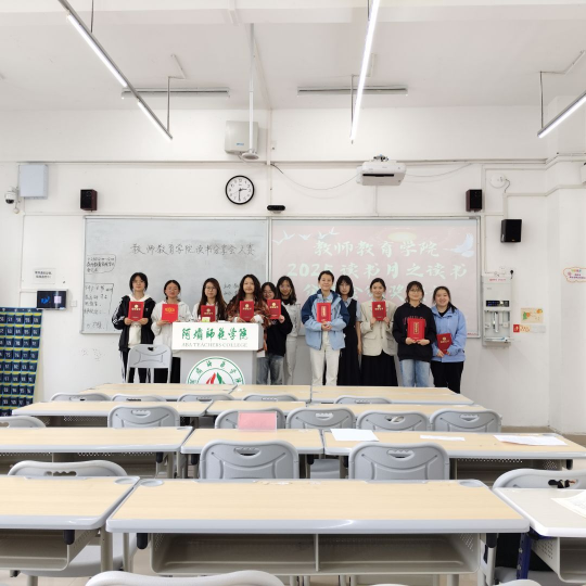 【教院讯】为营造浓厚的书香校园文化氛围,激发师生的阅读热情,促进知识交流与思想碰撞,教师教育学院于2025年4月23日12:40在树人楼A303成功举办“教师教育学院读书分享会”大赛,本次大赛由教师教育学院两委会主席团成员李爱媛、赵雨帆、周丽莎担任评委,潘定雪同学主持本次活动。