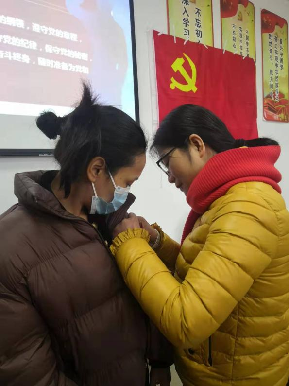 党总支书记邓志光同志、副书记范燕华同志,分别向两名新党员佩戴党员徽章并表示祝贺。两位书记同时向在场全体党员同志提出期望:希望各位党员同志在今后的工作中,真正做到以身作则,积极发挥先锋模范作用。
