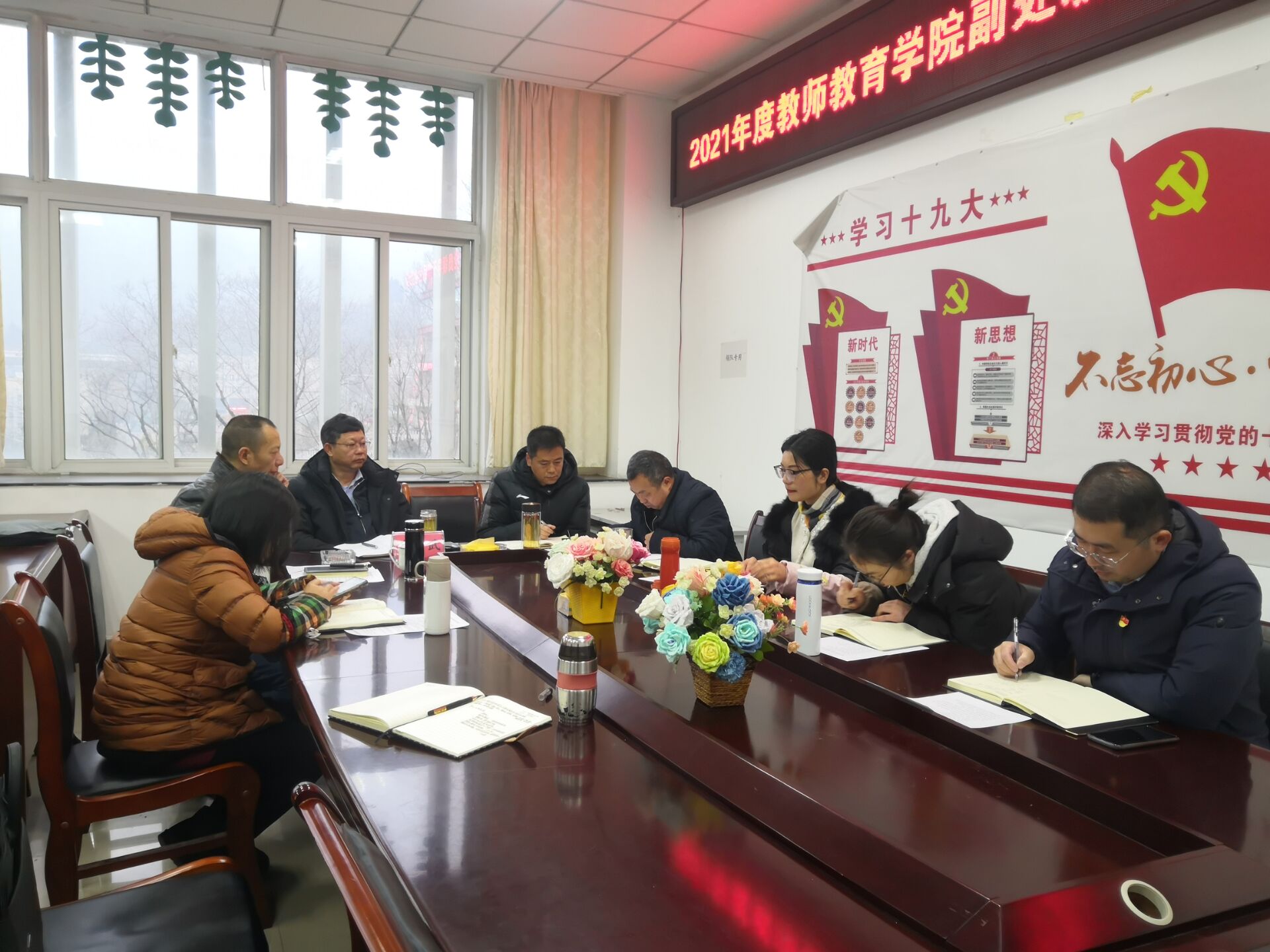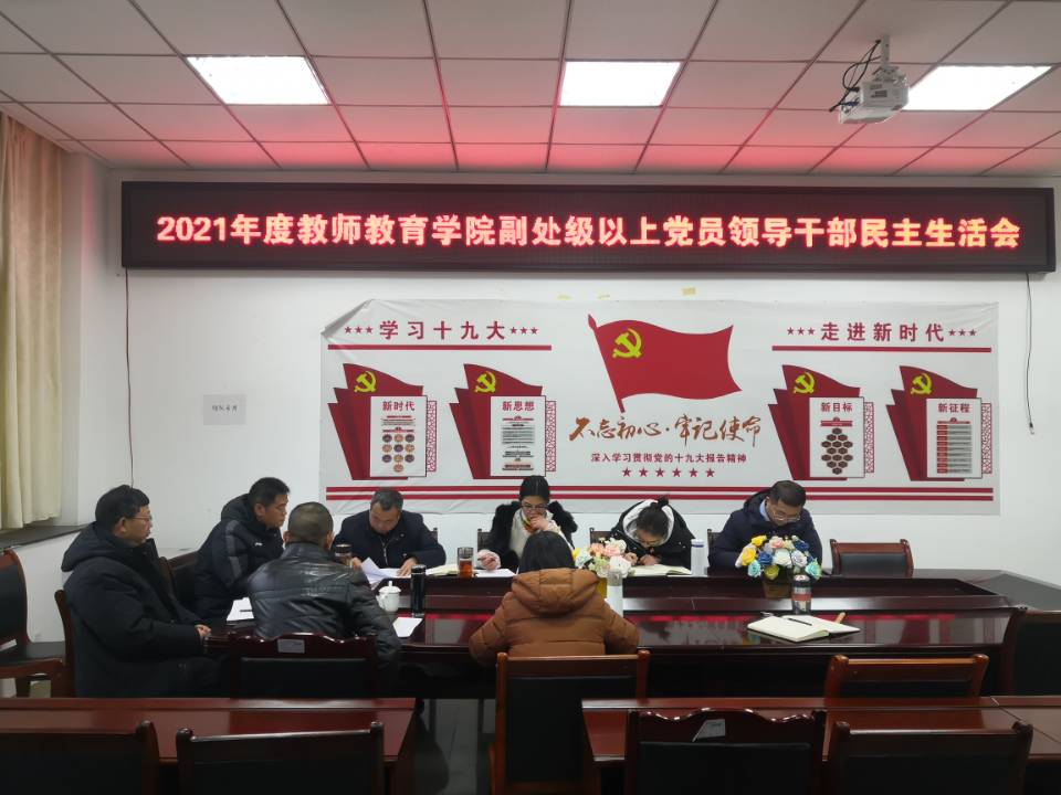 【教院讯】2022年1月12日上午,教师教育学院党总支在B305会议室召开副处级以上党员领导干部民主生活会。学校党委副书记、校长向武同志,党委组织部正处级专职组织员周定真同志,纪委委员、体育与健康学院党总支书记陈松同志到会指导,学院院长李强同志、党总支副书记范燕华同志、副院长王小琴同志、宣传委员叶小军同志、纪检委员黎林烽同志参会,专职组织员卿敏同志列席会议。会议由党总支书记邓志光同志主持。