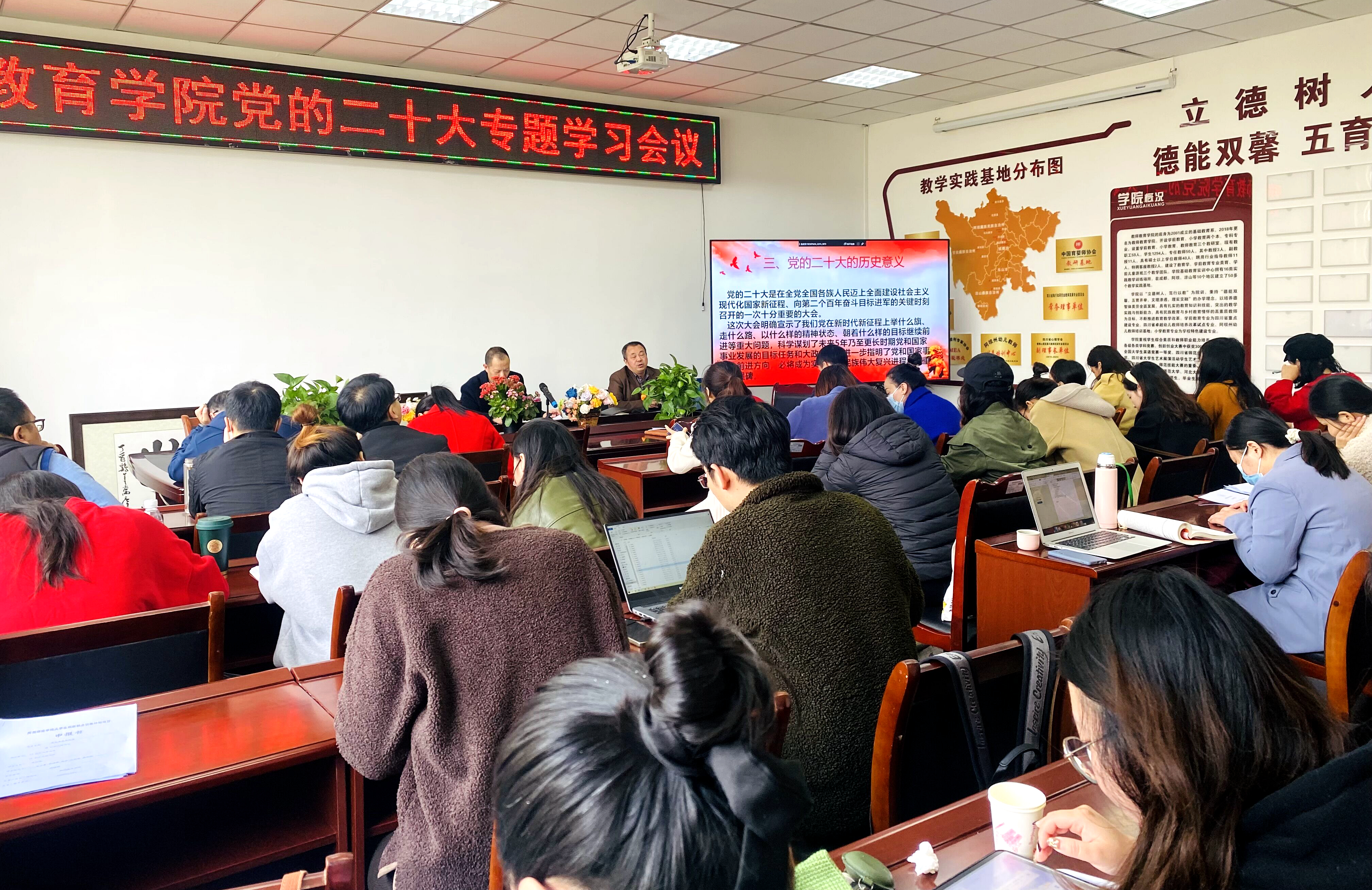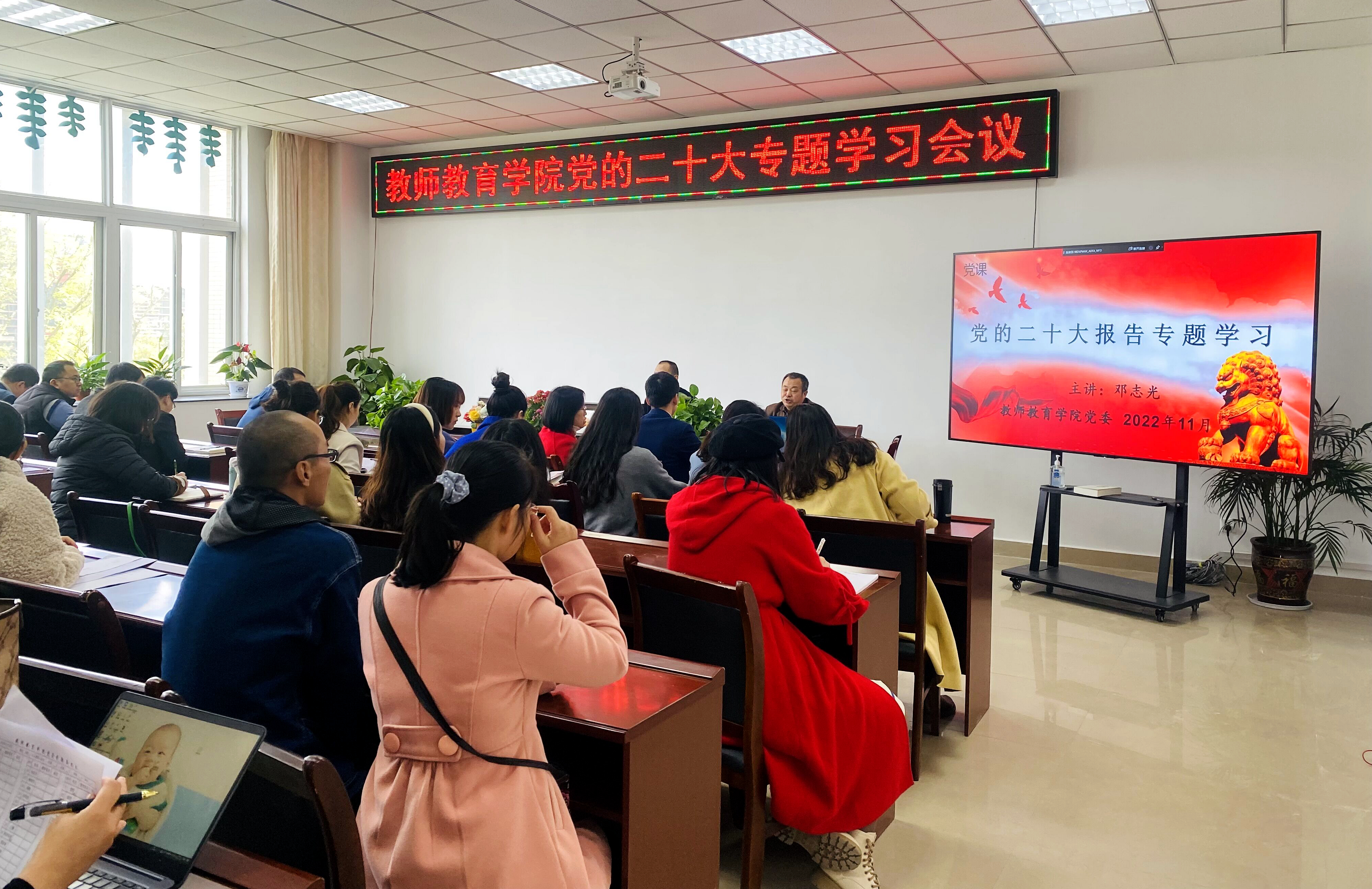 最后,邓书记强调,全体教职工要坚持将党的二十大报告作为政治理论学习的主要内容,要悟透悟深,从报告原文中深入理解党的二十大精神的时代意义,从社会实际中去体验党的二十大报告的应有之意,希望全体教职工要积极行动,在日常教学与工作中贯彻落实会议精神,推动学院和学校的发展。