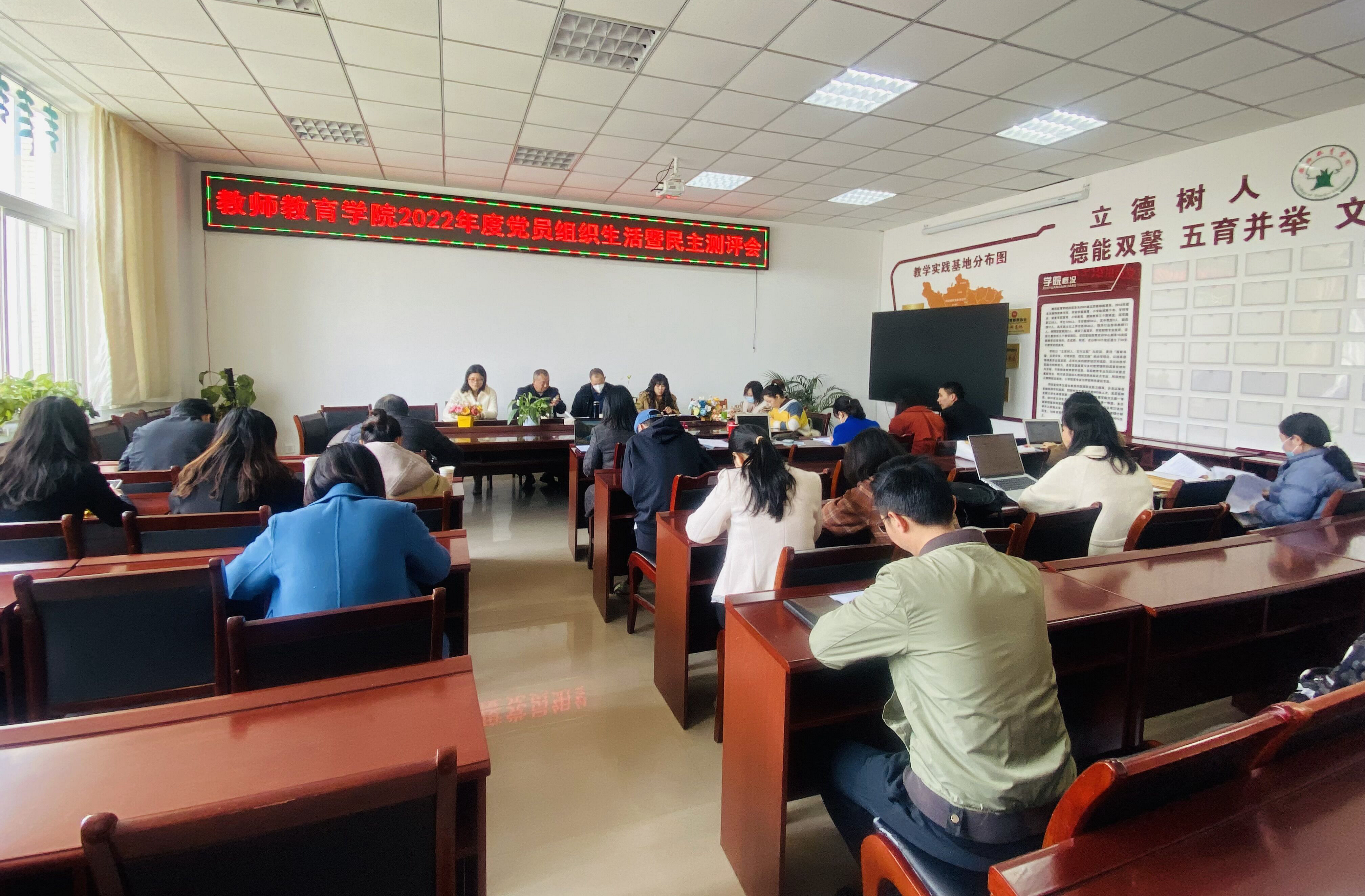 【教院讯】3月15日下午1点,教师教育学院第一党支部在B305会议室召开了2022年度党员组织生活暨民主测评会。会议由第一党支部书记许春蓉同志主持,第一党支部全体党员参加了会议。