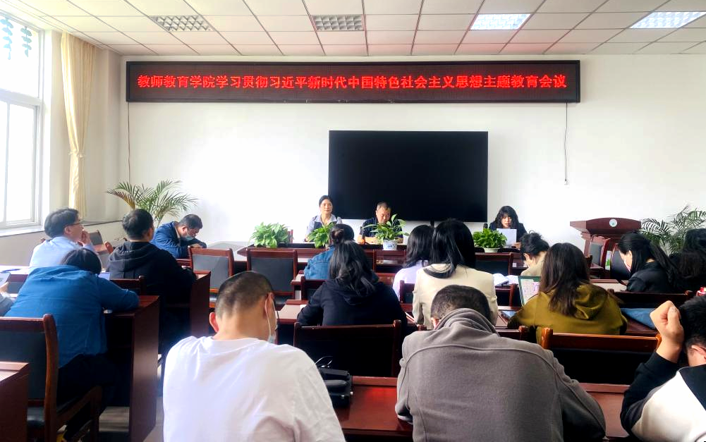 【教院讯】2023年5月6日,教师教育学院在B305会议室召开学习贯彻习近平新时代中国特色社会主义思想主题教育会议。教师教育学院第一党支部书记许春蓉同志主持并作动员讲话。党委书记邓志光同志到会指导并讲话,党委副书记范燕华同志出席会议,学院全体教师参会。