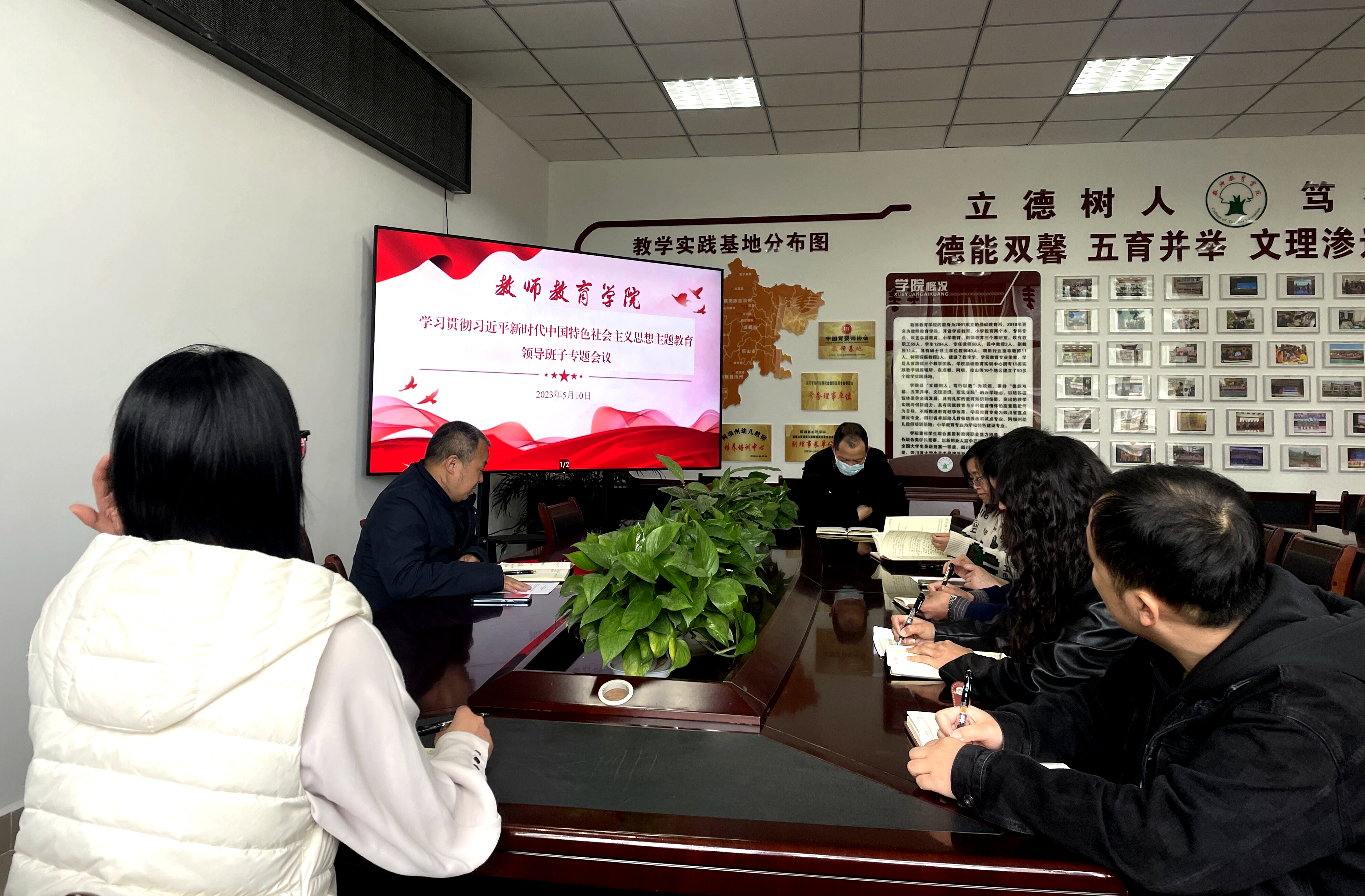 【教院讯】5月10日,教师教育学院在B305会议室召开学习贯彻习近平新时代中国特色社会主义思想主题教育领导班子专题会议。学院党委书记邓志光同志主持会议,党委副书记、院长李强,党委副书记范燕华出席会议,学院党委委员、第一党支部书记许春蓉、第二党支部书记顾鹏参会。