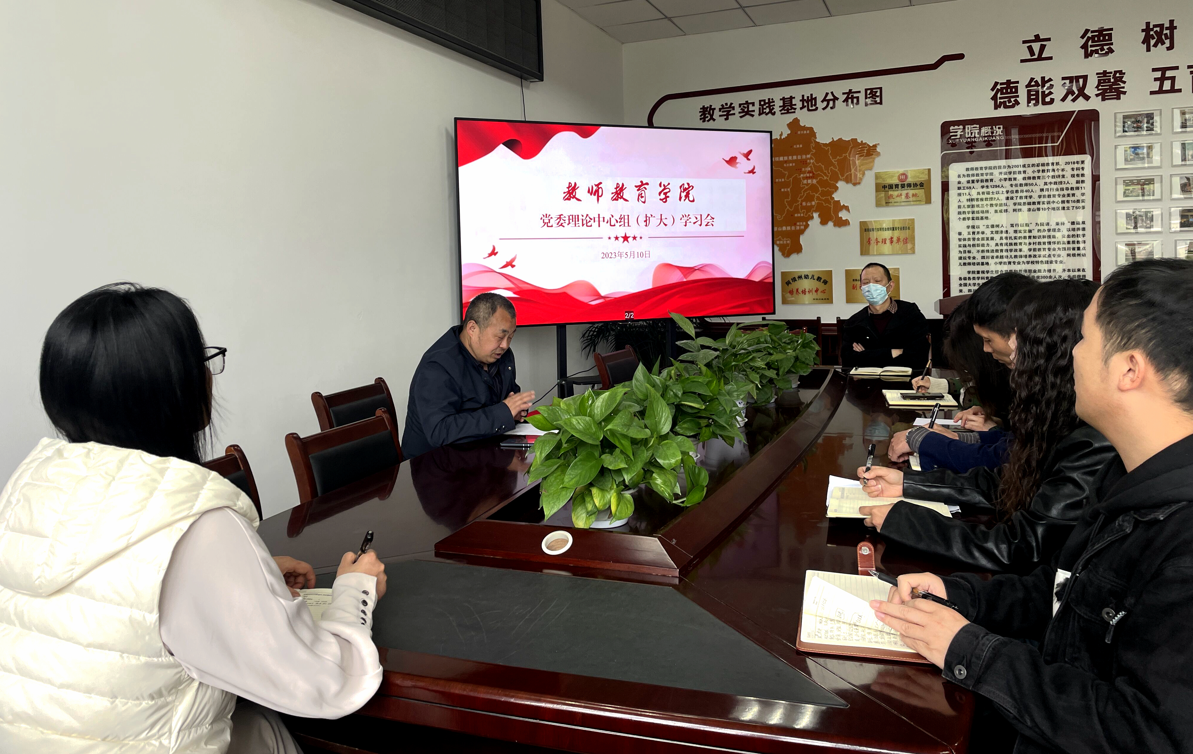 【教院讯】2023年5月10日,教师教育学院召开党委理论中心组(扩大)学习会。教师教育学院党委书记邓志光同志主持会议,党委副书记李强同志和党委副书记范燕华同志出席会议,教师教育学院党委委员、教师教育学院第一党支部书记许春蓉同志和教师教育学院第二党支部书记顾鹏同志参会。