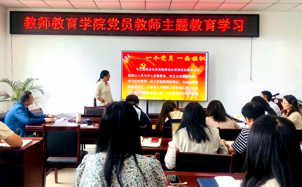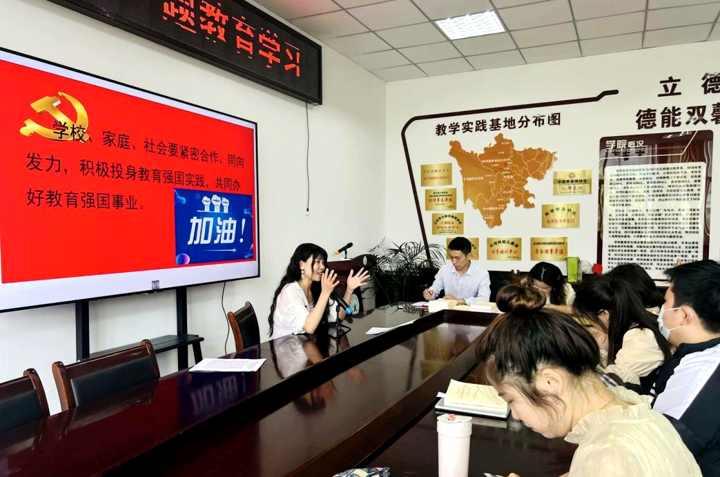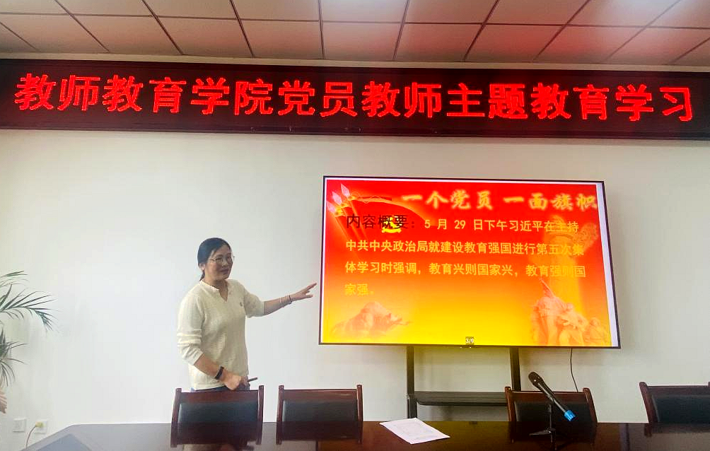2023年6月7日,教师教育学院召开“加快建设教育强国 为中华民族伟大复兴提供有力支撑”主题教育学习会议。教师教育学院第一党支部书记许春蓉同志主持会议,第一党支部党员教师沈明煊同志带领大家共同学习。学院全体党员教师参会。