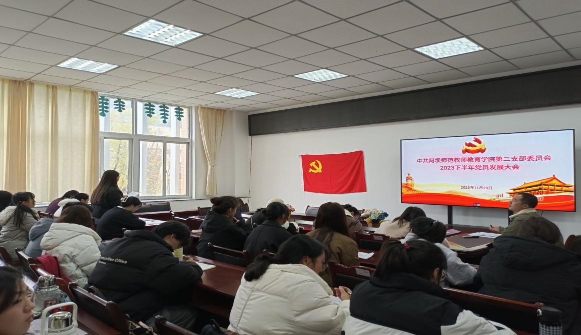 【教院讯】为吸引和接纳优秀学生以壮大我院党员队伍,同时为学院党支部的发展打下坚实基础,教师教育学院第二党支部于11月29日在树人楼B305会议室召开党员发展大会。第二党支部书记顾鹏、支部委员华尔么、斯郎央章、李明星、龚维馨莅临现场。会议由第二党支部书记顾鹏主持。