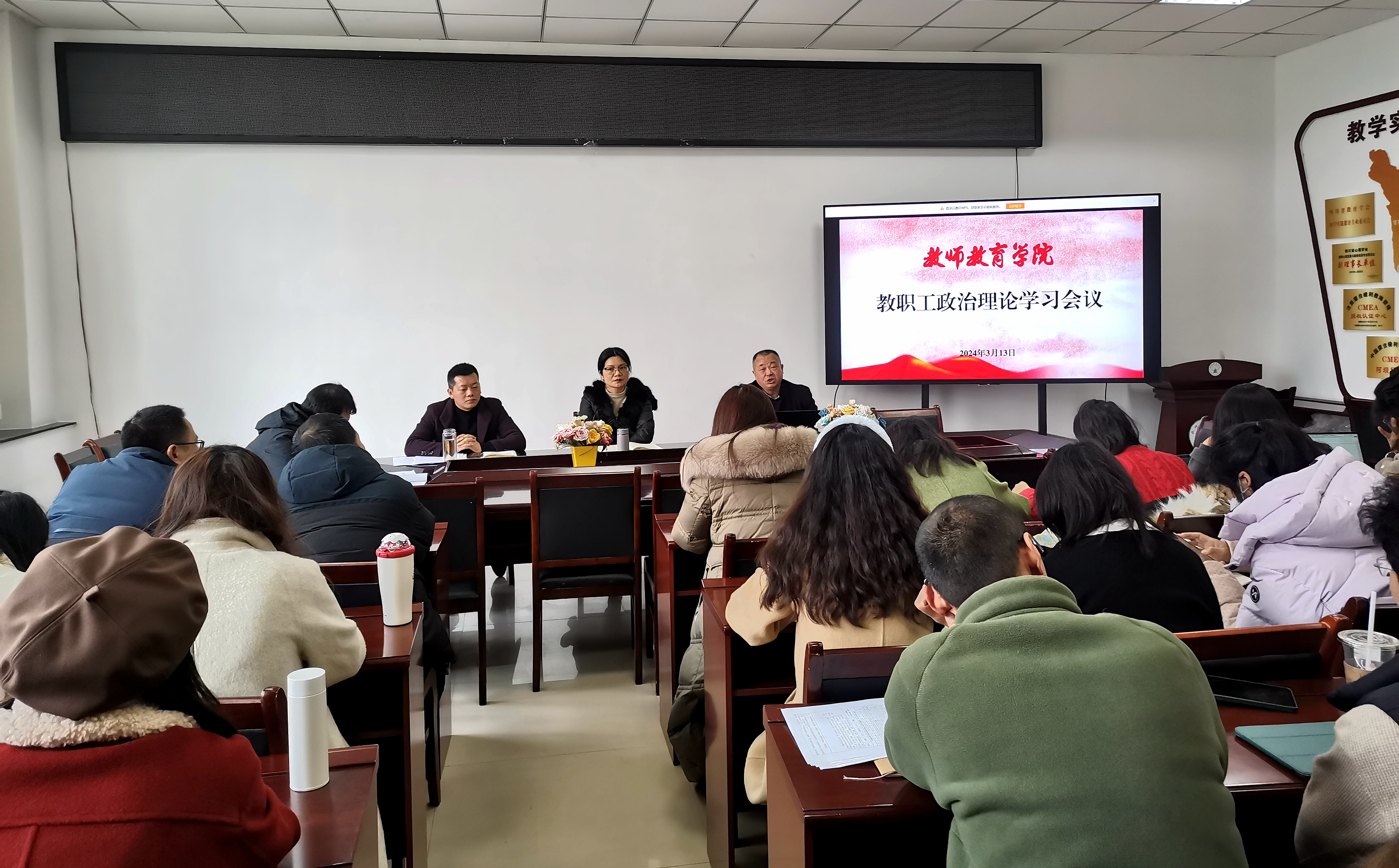【教院讯】3月13日下午,教师教育学院在树人楼B305会议室召开教职工政治理论学习会议,学院全体教职工参加了会议,会议由党委书记邓志光主持。