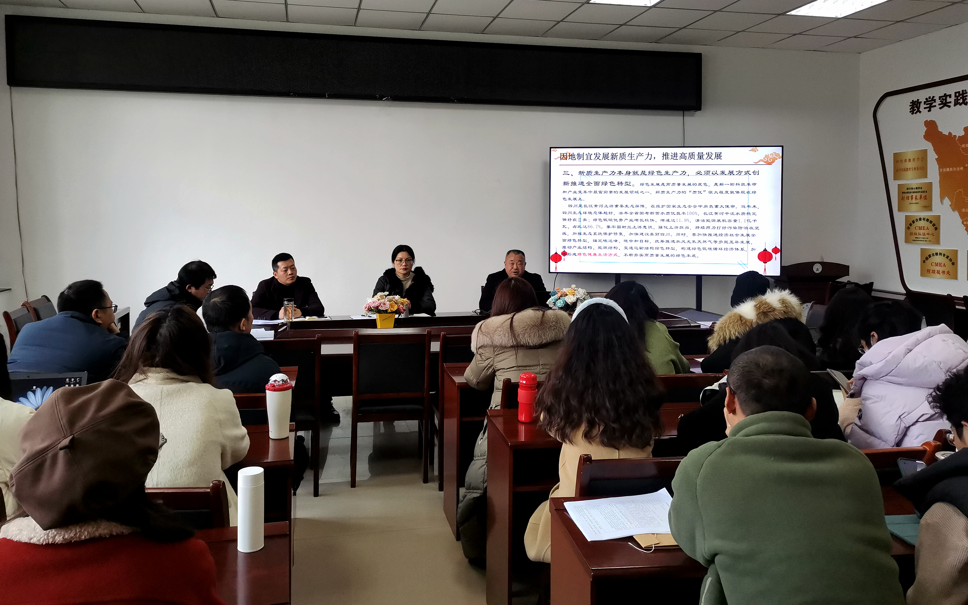 会上,邓书记以《发展新质生产力为着力点,推进高质量发展》为学习主题,向全院教职工解释了什么是新质生产力、新质生产力的特点,发展新质生产力的条件以及具体的方式与方法。他指出,学校当前正处于新时期高质量发展的起步和探索阶段,要不断地迎接高质量发展所带来的困难与挑战,加强技创新和人才培养,全体教师要以发展新质生产力为重要着力点,提高个人认识,自觉在思想上对标,行动上对表,坚持把学校和学院的高质量发展作为当前的重要任务来抓,不断提升个人能力,转变观念,凝心聚力,共同推进学院的学科建设和专业建设。全体教职工要以新质发展为导向,重视教学和科研工作,结合任教学科专业特点不断开展教学研究,融合新思想、新理念和新技术,促进科研产出,以完美的答卷来诠释高质量发展。