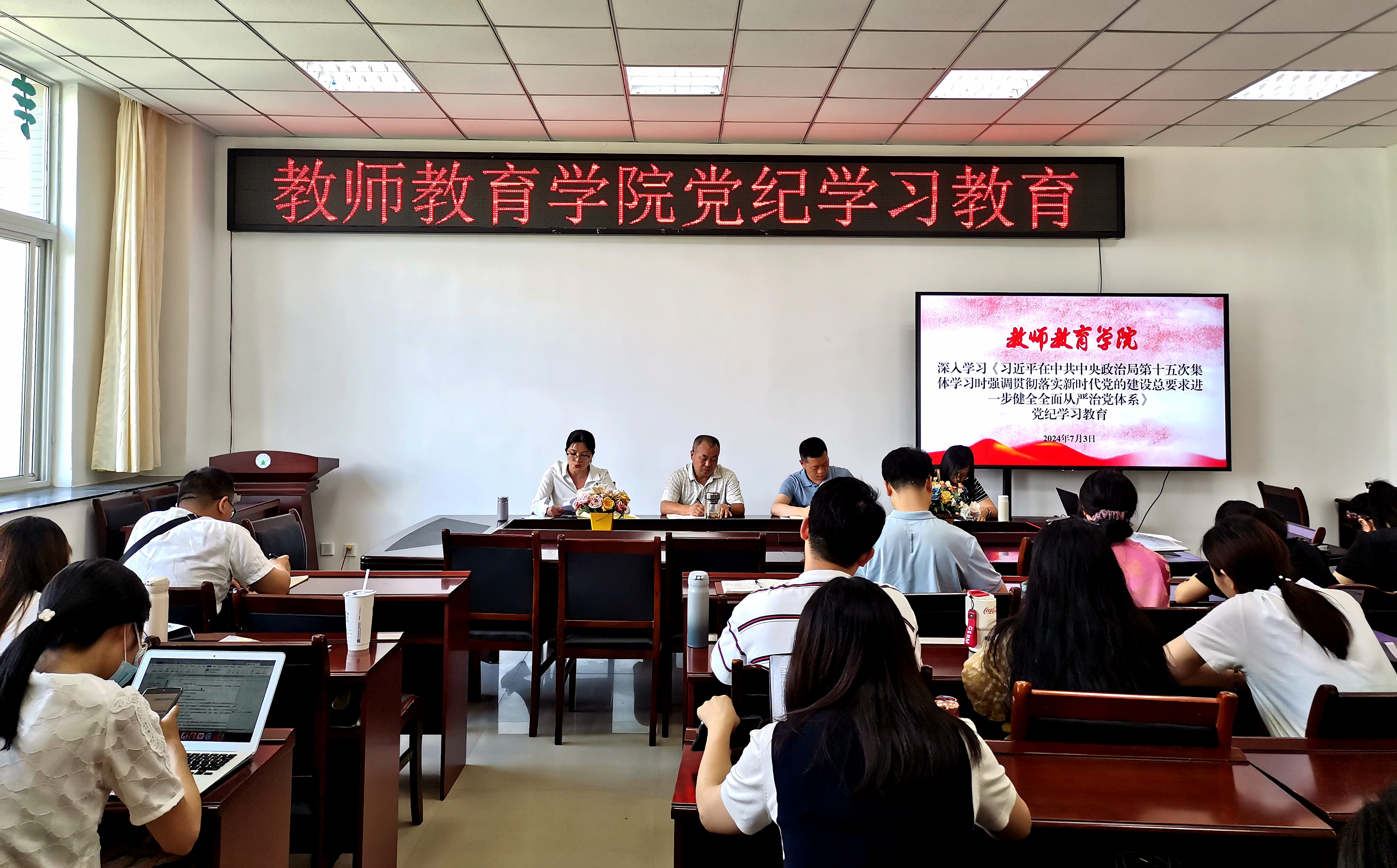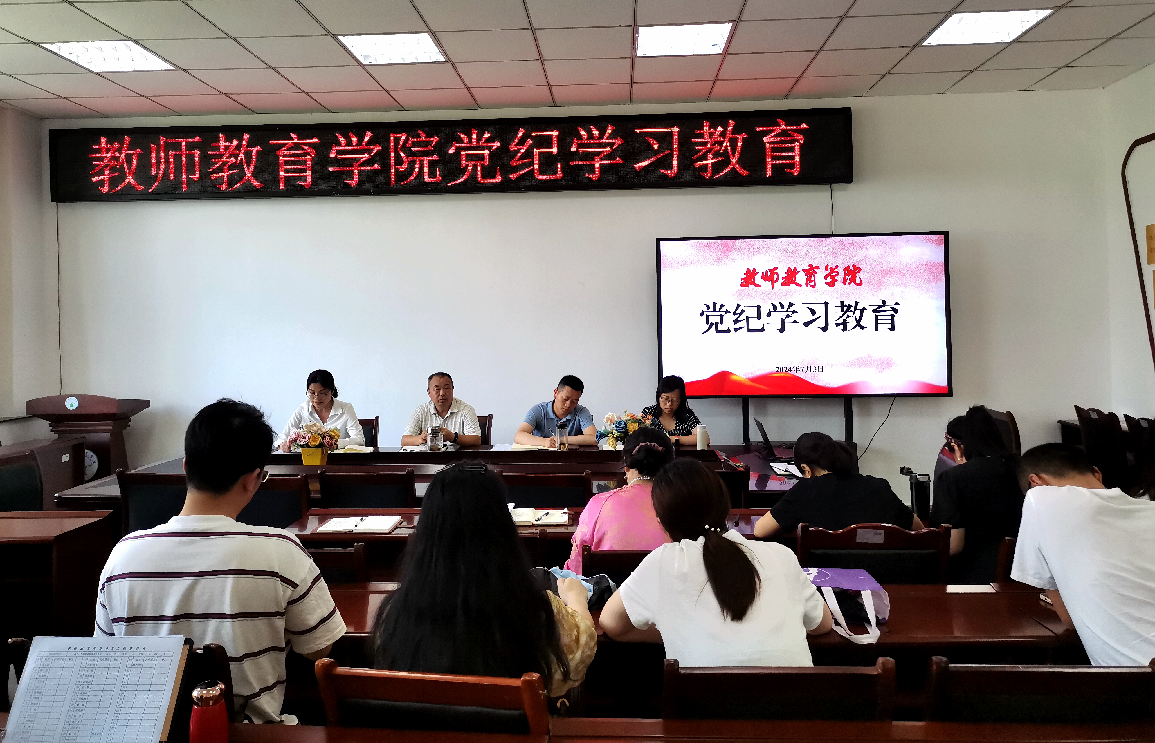 【教院迅】按照学校党纪学习教育工作部署的相关要求,7月3日下午,教师教育学院在树人楼B305会议室召开党纪学习教育会议,学院全体教师参加了会议,会议由党委书记邓志光主持。