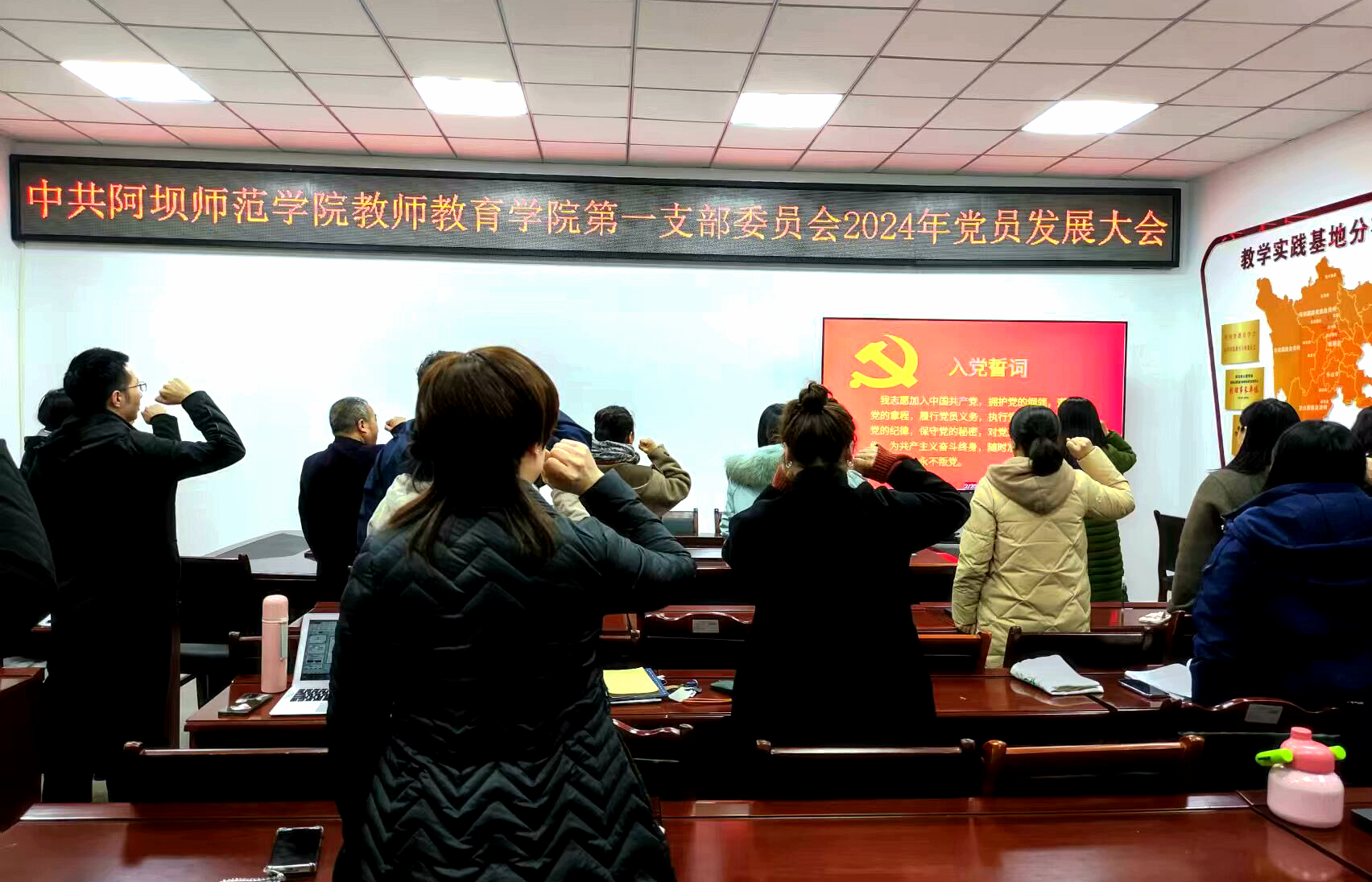 党委书记邓志光同志向新入党的林倩雪同志表达了祝贺,并期望其在今后的工作中能够秉持爱岗敬业、乐于奉献的精神,切实发挥党员先锋模范作用。副书记范燕华同志带领全体党员重温入党誓词,并着重强调全体党员务必时刻牢记党的宗旨,坚守初心,砥砺前行。本次会议在庄重且热烈的氛围中圆满落幕,此次党员发展大会不仅为党组织注入了新鲜血液,也进一步强化了全体党员的党性意识与使命感,对学院党建工作的深入开展具有重要意义。