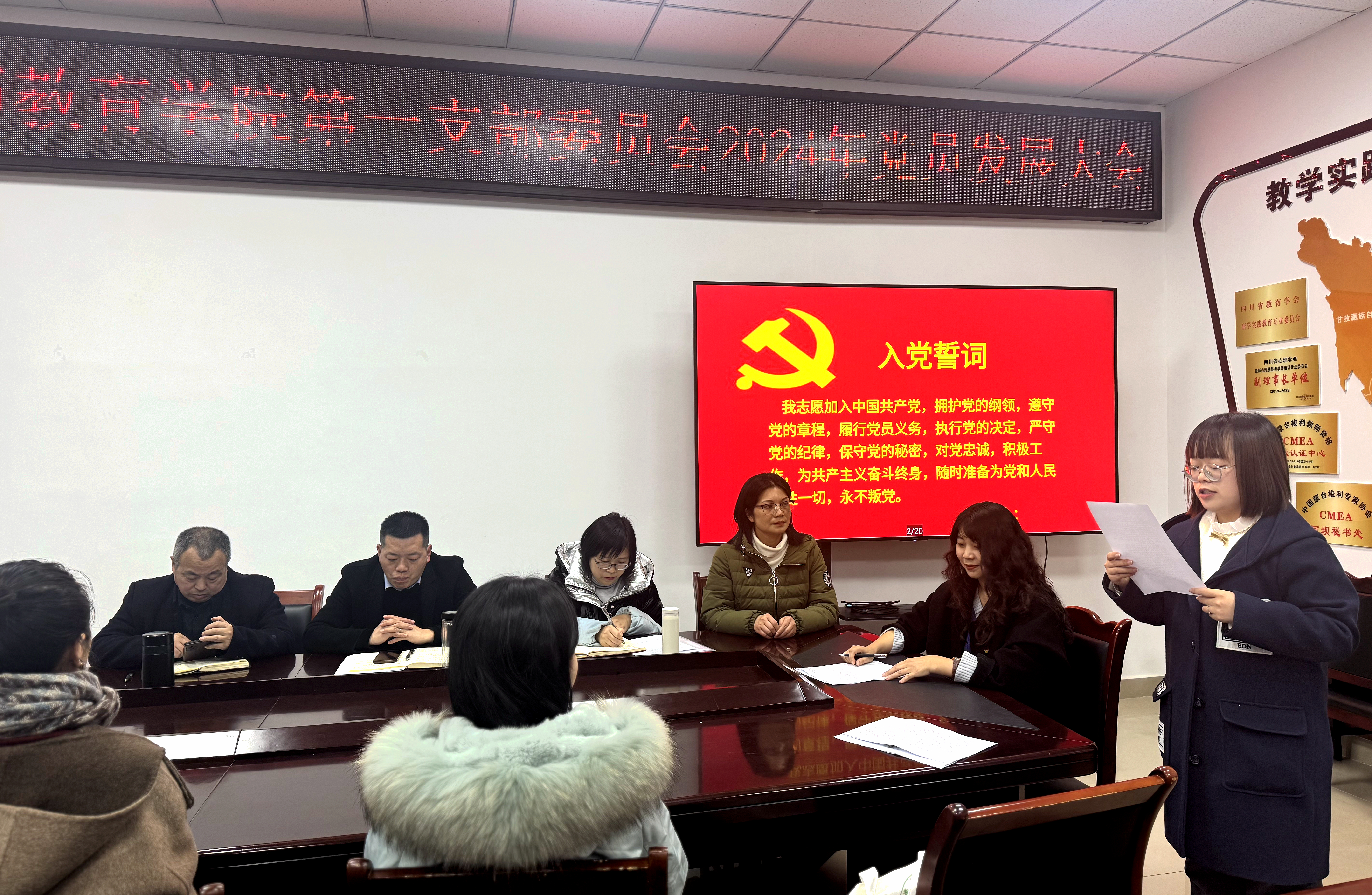 【教院讯】12月4日下午,教师教育学院第一支部委员会在B305会议室召开党员发展大会,讨论接收林倩雪同志为预备党员事宜。会议由党支部书记许春蓉同志主持,党委书记邓志光,党委副书记、院长徐波,党委副书记、纪委书记范燕华,副院长王小琴,组织员王灏、党委宣传委员唐啟瑜及第一支部全体党员同志出席本次会议。