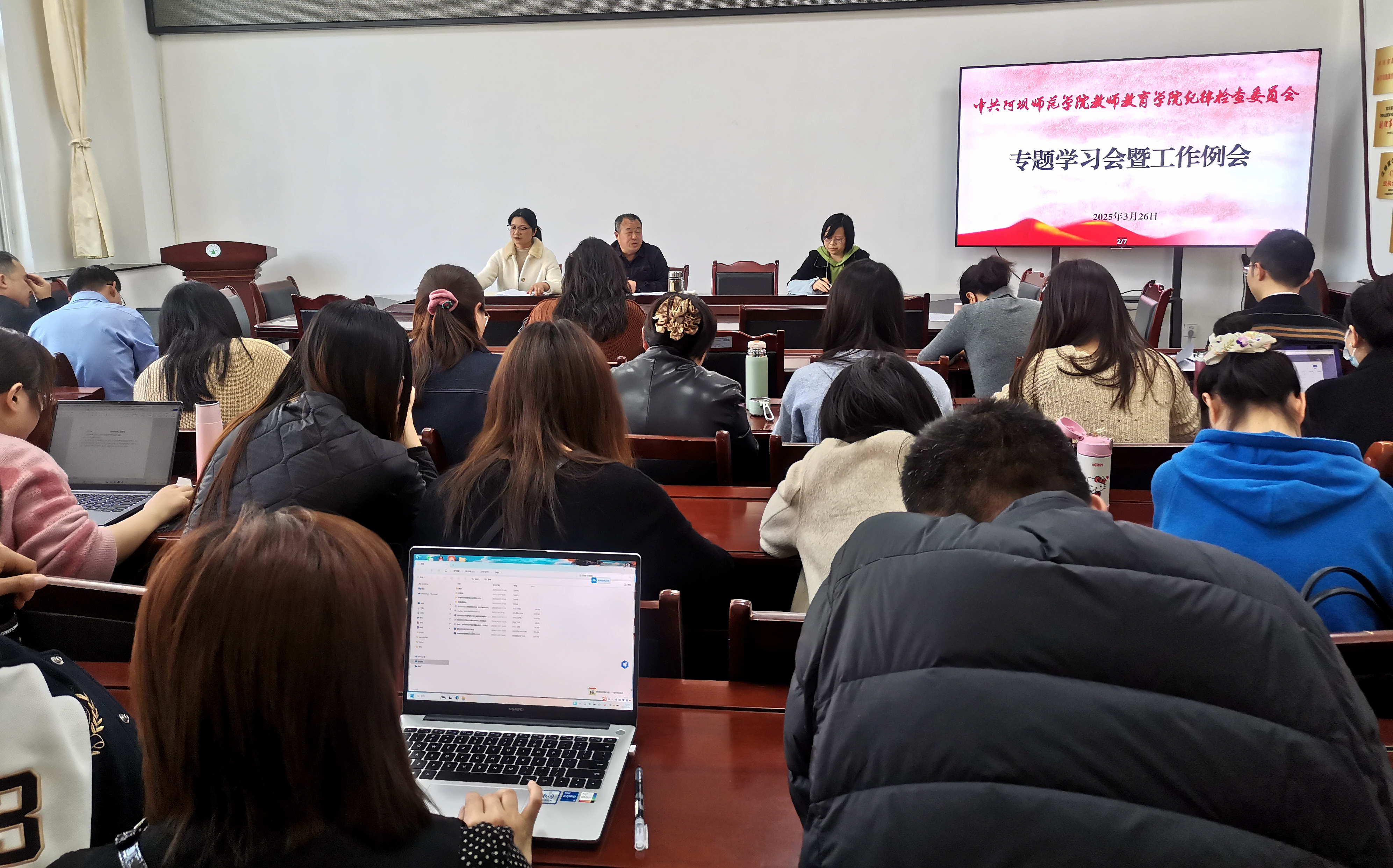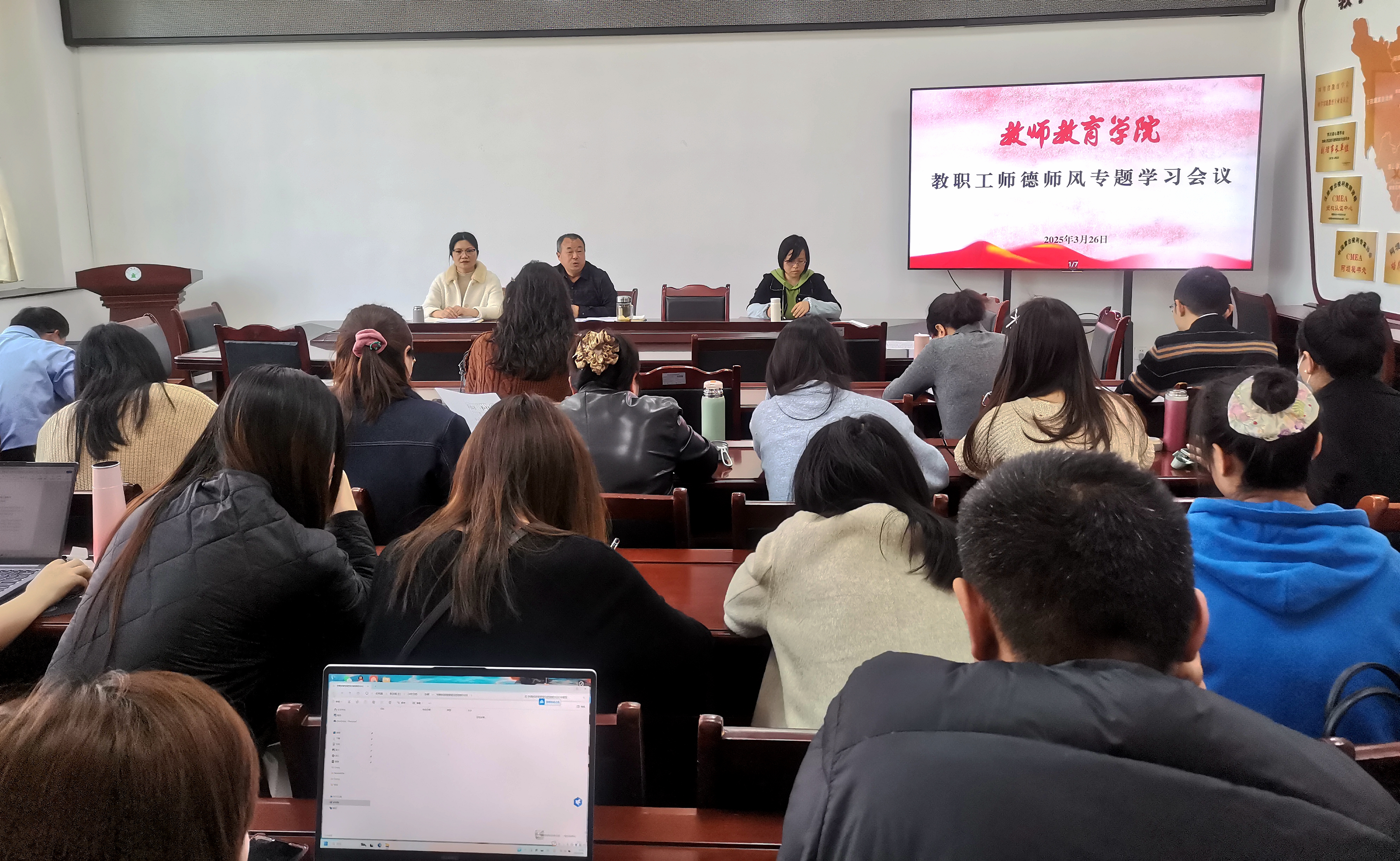 【教院迅】为进一步强化学院教师师德师风建设,提升教师队伍的职业道德素质,规范教师职业行为,营造良好的教育教学环境,3月26日,教师教育学院在B305会议室召开师德师风专题会议,学院全体教师参加会议,会议由党委书记邓志光主持。