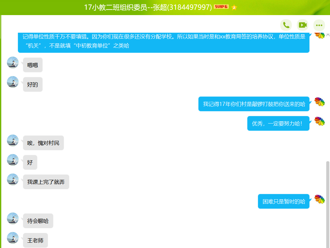 自学院党总支和毕业生就业工作领导小组发出通知以后,党员教师当即联系学生了解情况,主要是了解就业意向、就业心态、就业积极性以及关注就业渠道,尽力帮助困难毕业生解决心中关于就业的疑惑,引导困难毕业生积极就业、帮助她们调整心态,并提供更多的就业信息,希望困难毕业生能尽快找到一份相对满意的工作并顺利毕业。