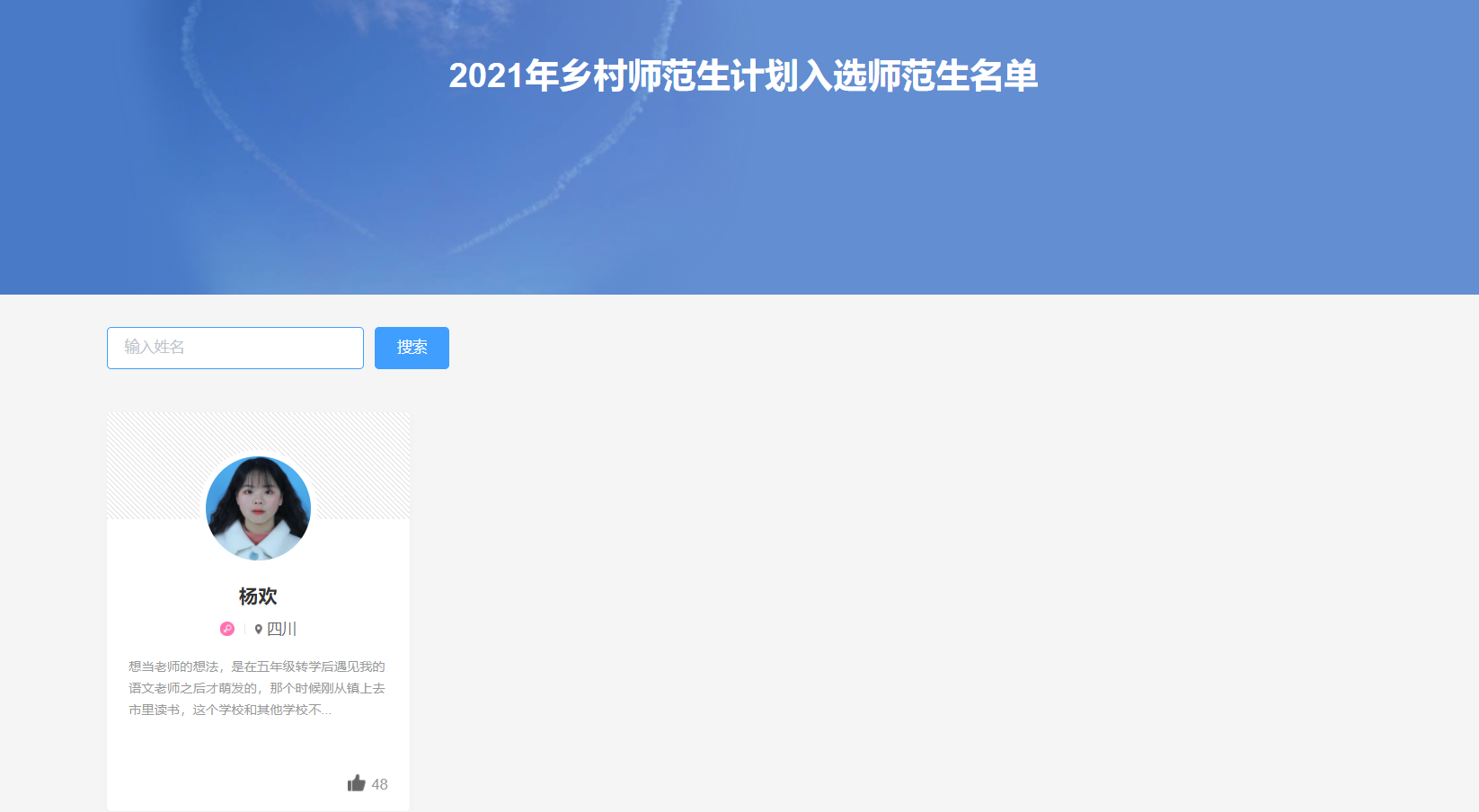 据悉,2021年马云公益基金会“乡村师范生计划”项目,面向全国各地的2021名应届入围师范生,经项目组初筛、初评和终评后,最终经评选委员会评定杨欢等300名师范生入选。入选的师范生,将由基金会提供持续5年、共计10万元的资助,支持他们在乡村一线实现个人价值,带动更多青年教师下得去、教得好、有发展,从而改善乡村教师队伍人才结构,为乡村儿童带去优质教育。