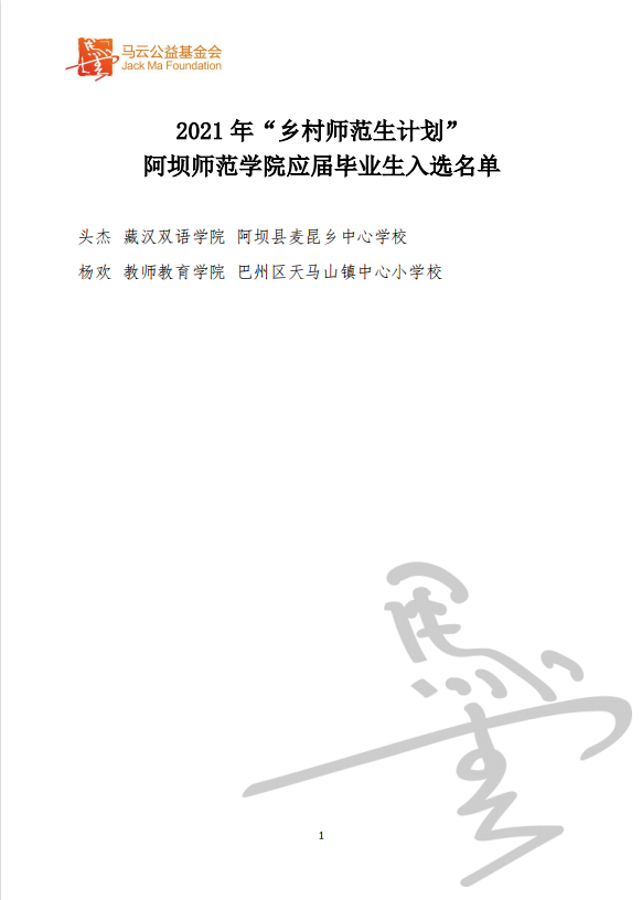【教院讯】近日,学院收到了来自马云公益基金会“乡村师范生计划”项目组发来的贺信,我院2021届小学教育专业公费师范毕业生杨欢同学入选2021年“马云乡村师范生计划”项目,教院师生备受振奋与鼓舞。