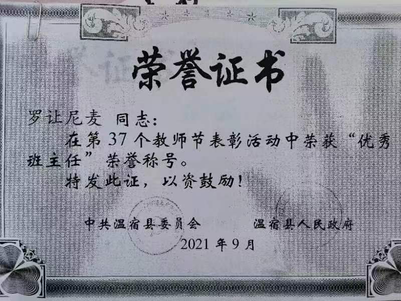 作为入职三年多的青年教师,罗让尼麦一直都很刻苦努力,总是向他人请教、学习,在他同期的教师中,也谦谦有礼,互助互学。曾在学校担任过六年级班主任、语文教师和学校党建办主任、纪检工作负责人。他负责学校党建、纪检工作期间,严于律己,对自己的学生倾注了无限的热情和关爱,尊重学生并以诚相待,深入了解学生,关心学生的思想和心理变化。