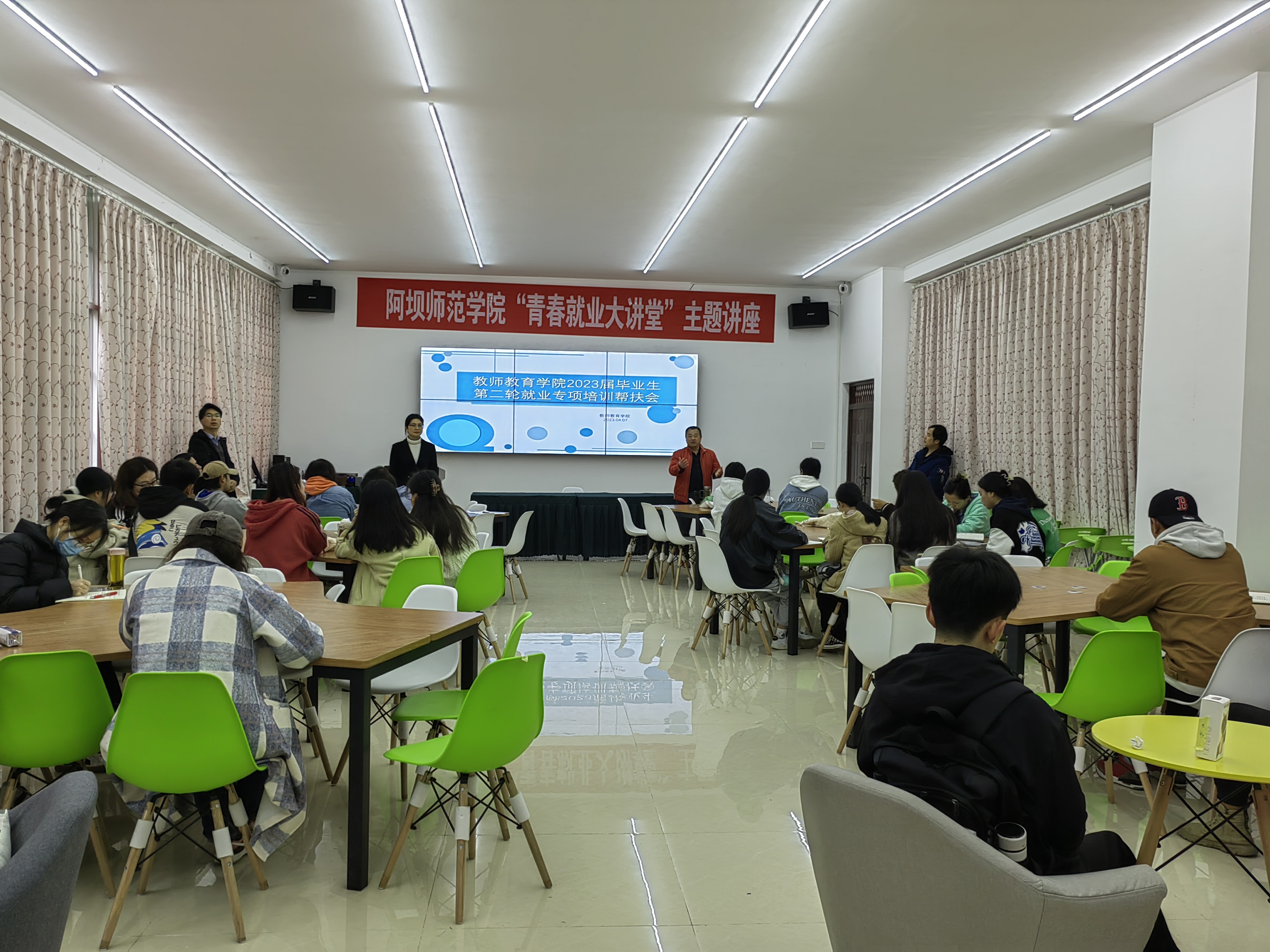 【教院讯】就业是第一民生,在全国上下学习贯彻党的二十大精神背景下,在学校即将迎来教育部本科教学合格评估冲刺背景下,教师教育学院主动作为、谋划,根据《中共阿坝师范学院教师教育学院委员会关于实现2023届毕业生各阶段就业目标及帮扶措施的通知》等文件精神和要求,教师教育学院积极应对规模空前的毕业生群体就业工作大考,有效促进2023届应届毕业生更充分、更高质量就业。在学院2023届毕业生就业领导小组邓志光书记、李强院长、范燕华副书记、王小琴副院长亲自挂帅和精心筹划下,教师教育学院举办了一系列针对2023届毕业生就业帮扶、指导的专项活动。4月7日继续启动2023届第二轮毕业生就业专项帮扶活动。邓书记、范副书记、王亚老师、华尔么老师、顾鹏老师、斯郎央章老师担任主讲教师,2023届未落实就业毕业生按时到场上课。