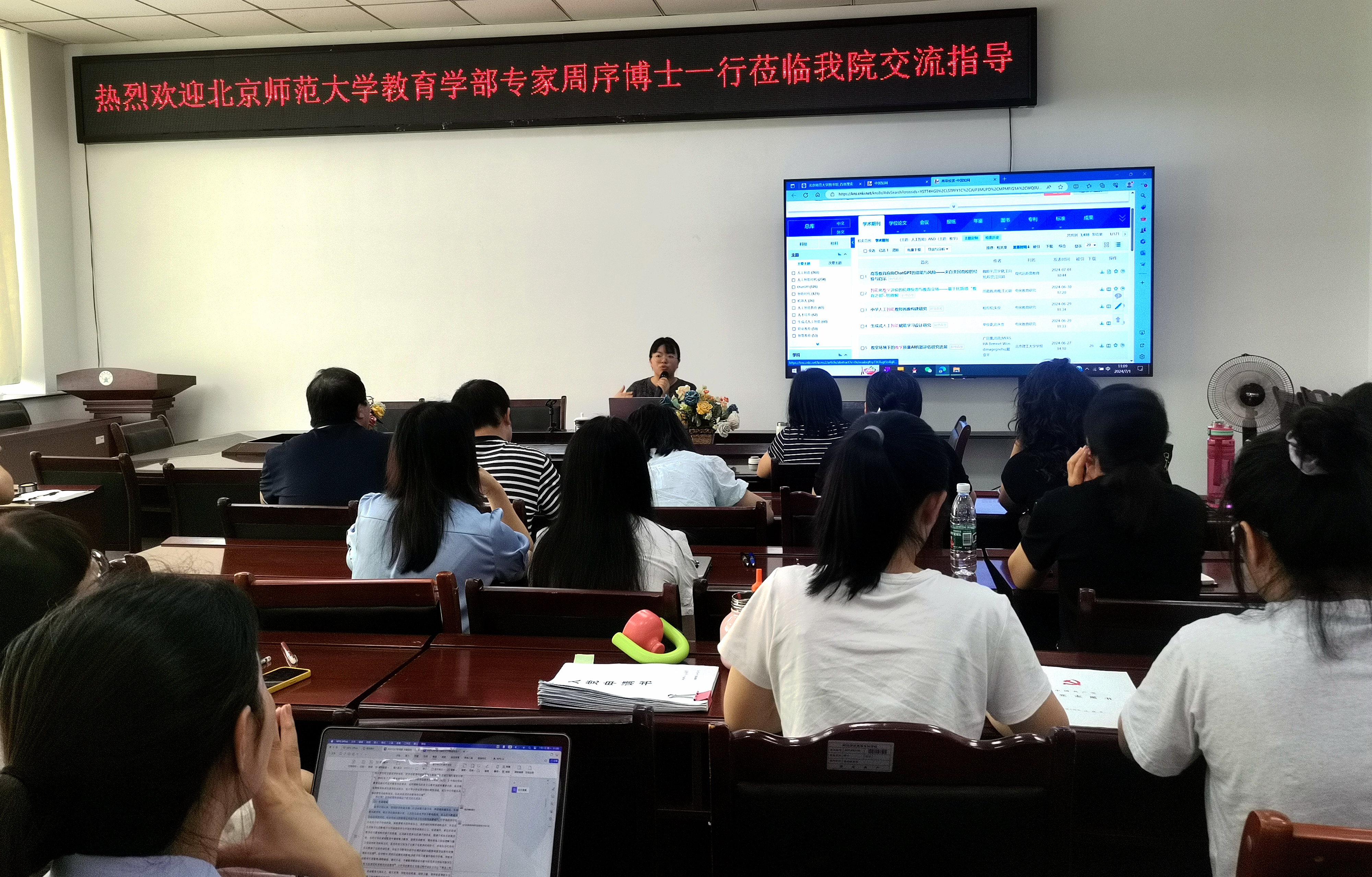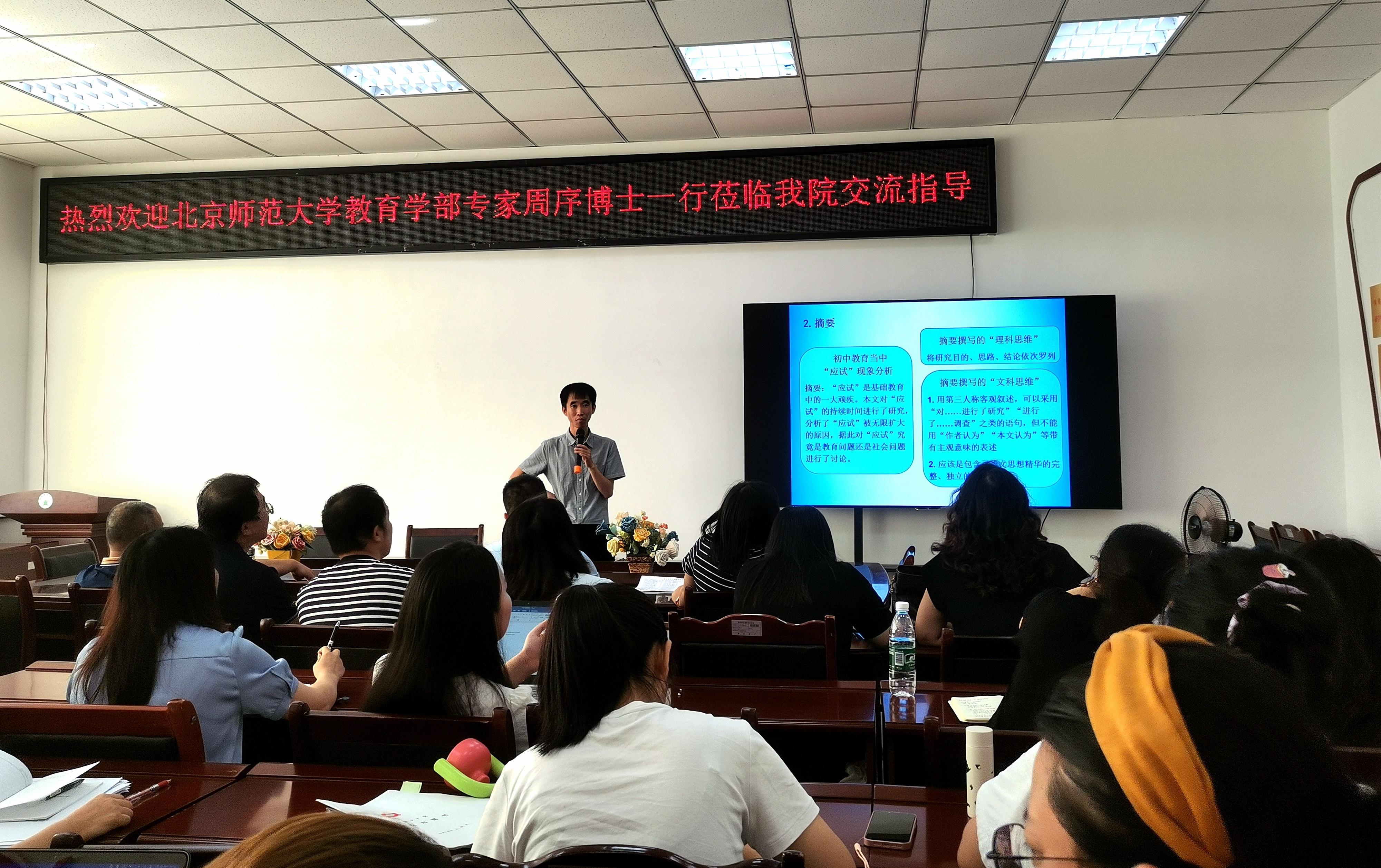 【教院讯】为进一步激发学院教师投身科研的热情,充分发挥教学科研在师范专业认证和硕士点建设工作中的重要作用,全面提升学院教师整体科研能力和学术论文写作水平,7月1日上午,教师教育学院在B305会议室举办学术论文写作专题讲座与交流座谈会。北京师范大学教育学部周序副教授及团队成员张钰苑受邀出席会议,专题讲座和交流座谈会由教师教育学院院长徐波主持,学院全体教师参加了会议。
