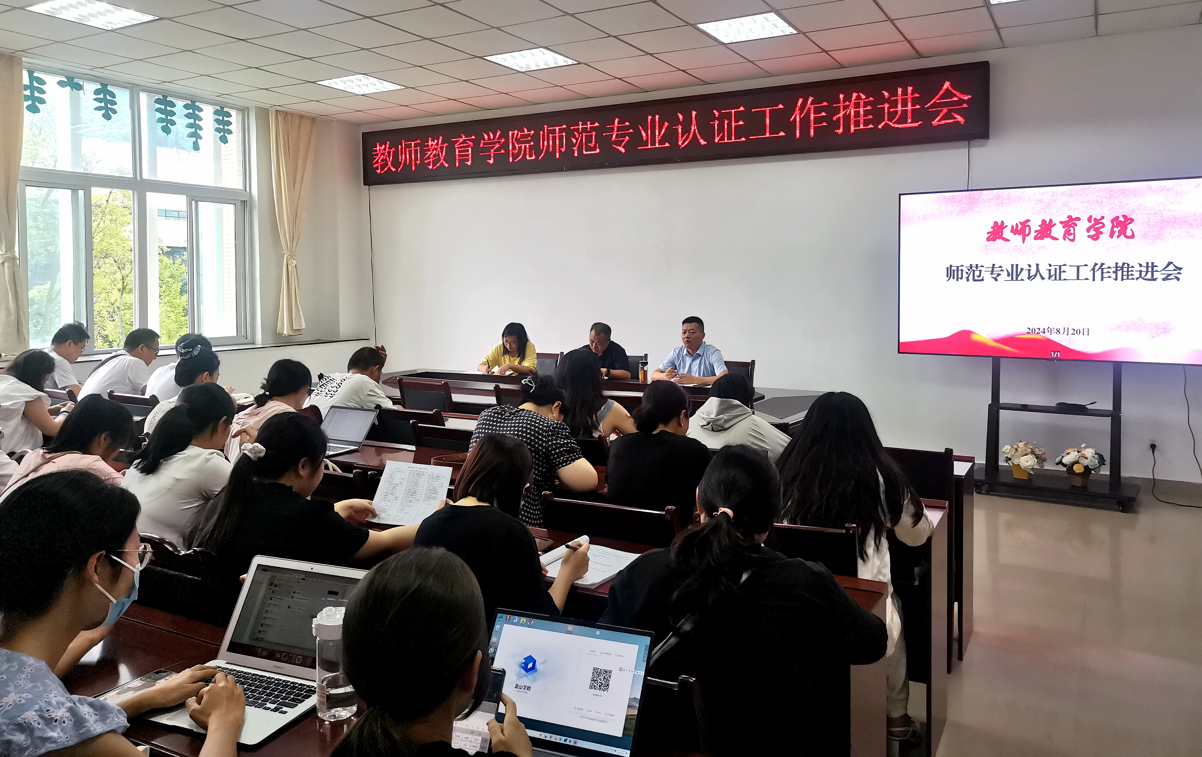 【教院迅】为有序推进师范专业认证,全面总结专业认证过程中的相关经验,推动持续改进工作落实落地。8月20日下午4点,教师教育学院在树人楼B305会议室召开师范专业认证工作推进会,安排部署学前教育和小学教育专业认证相关工作,学院全体教师参加了会议,会议由党委书记邓志光主持。