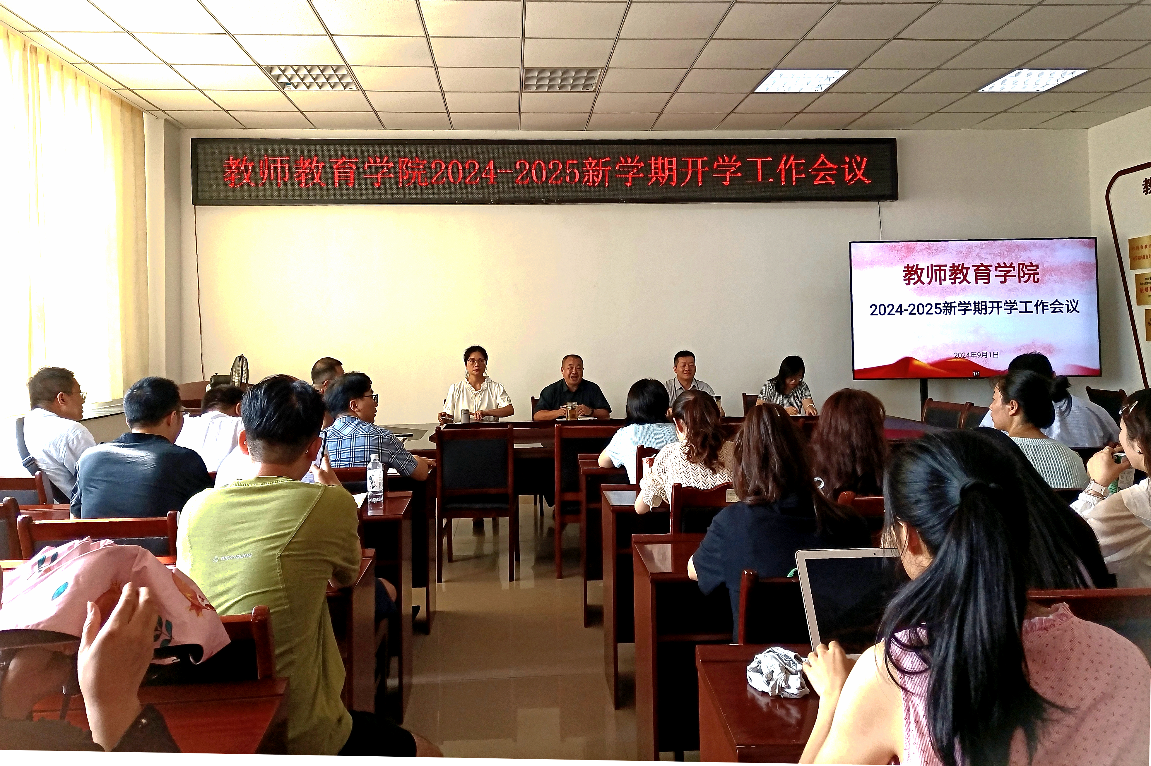 【教院迅】为有序推进师范专业认证,全面总结专业认证过程中的相关经验,新学期持续推进相关工作落实落地。9月1日上午十点,教师教育学院在树人楼B305会议室召开2024-2025-1新学期开学工作会议,安排部署师范专业认证、教学科研相关工作,学院全体教师参加了会议,会议由党委书记邓志光主持。
