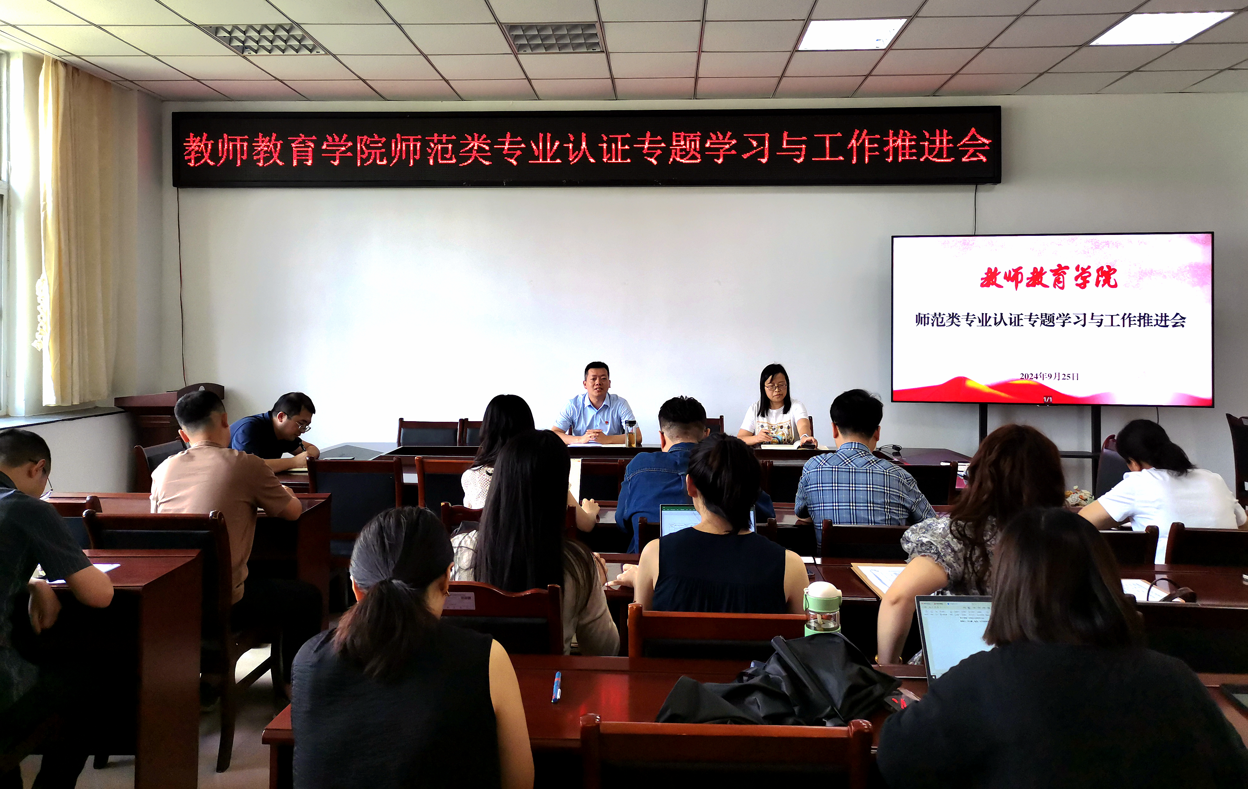【教院讯】为进一步发现学前教育和小学教育专业在认证过程中的问题,全面总结专业认证过程中的相关经验,有序推进师范专业认证持续改进工作落实落地。9月25日下午,教师教育学院在树人楼B305会议室召开师范类专业认证专题学习与工作推进会,传达学校预认证情况,安排部署近期认证工作,学院全体教师参加了会议,会议由院长徐波主持。