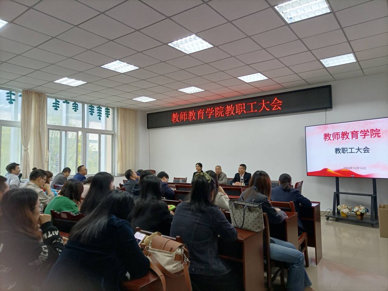 【教院迅】为全面总结专业认证过程中的相关经验,有序推进师范专业认证持续改进工作落实落地。10月16日下午,教师教育学院在树人楼B305会议室召开教职工大会,学院全体教师参加了会议,会议由院长徐波主持。